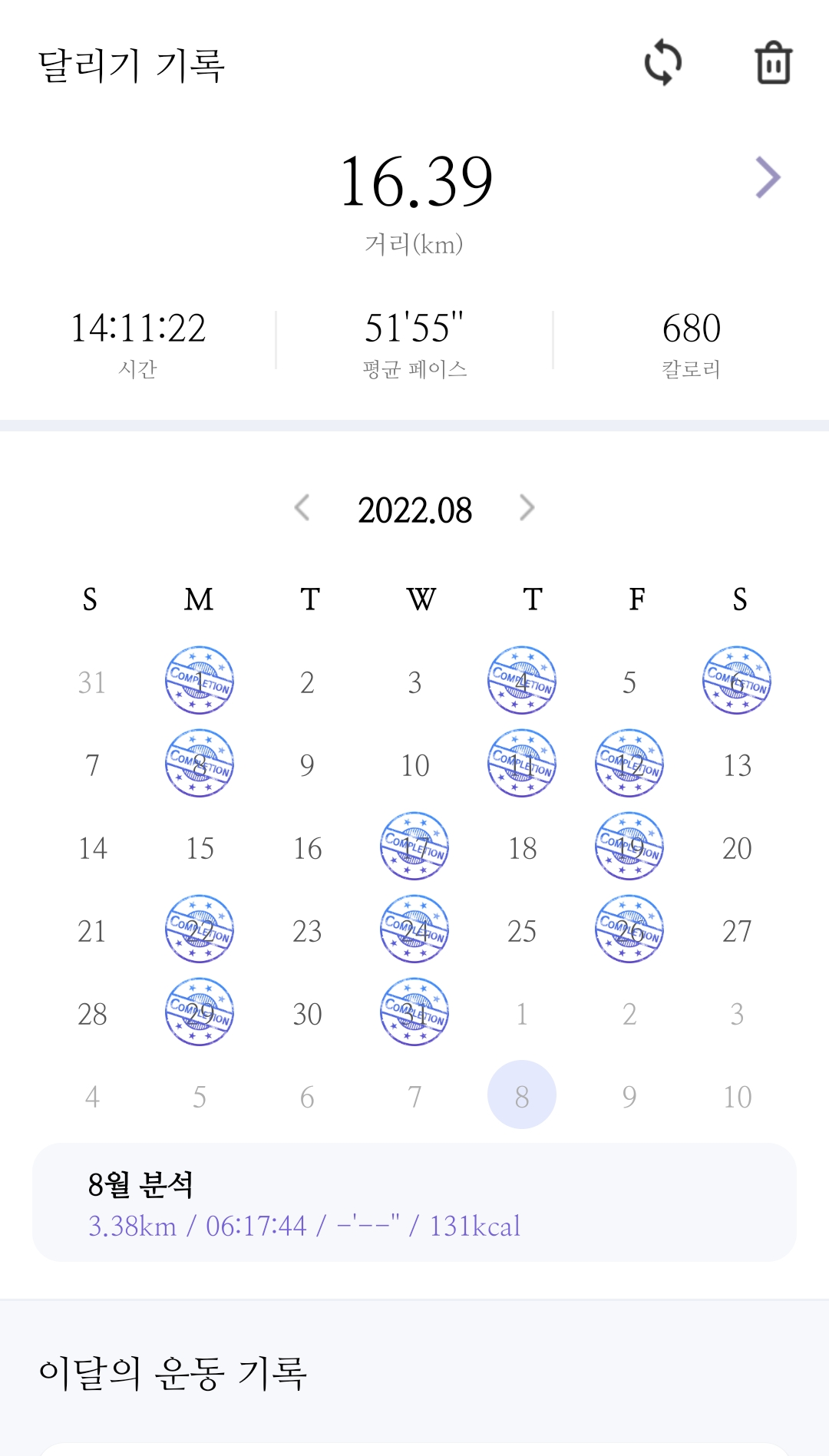 나는 정확히 월, 수, 금 런데이!!로 잡아놓지는 않고, 그냥 일주일에 세 번~으로 러프하게 계획을 잡아놓았다. 주로 헬스 하러 갈 때 러닝까지 같이 뛰어서 일정을 다 지킬 수 있었는데, 만약 러닝만 했다면 완주까지의 동기부여가 더 어려웠을 수도 있다. 따라서 런데이 8주 플랜을 시작할 때는 다른 목표보다는 "8주 플랜 완주". 이 목표 하나만 바라보며 임해보자. 다른 목표에 distracted 되지 않고, 오늘 하루, 일주일에 세 번, 그렇게 8주 달리기를 달성했다는 것 만으로 굉장히 뿌듯할 것이다.
