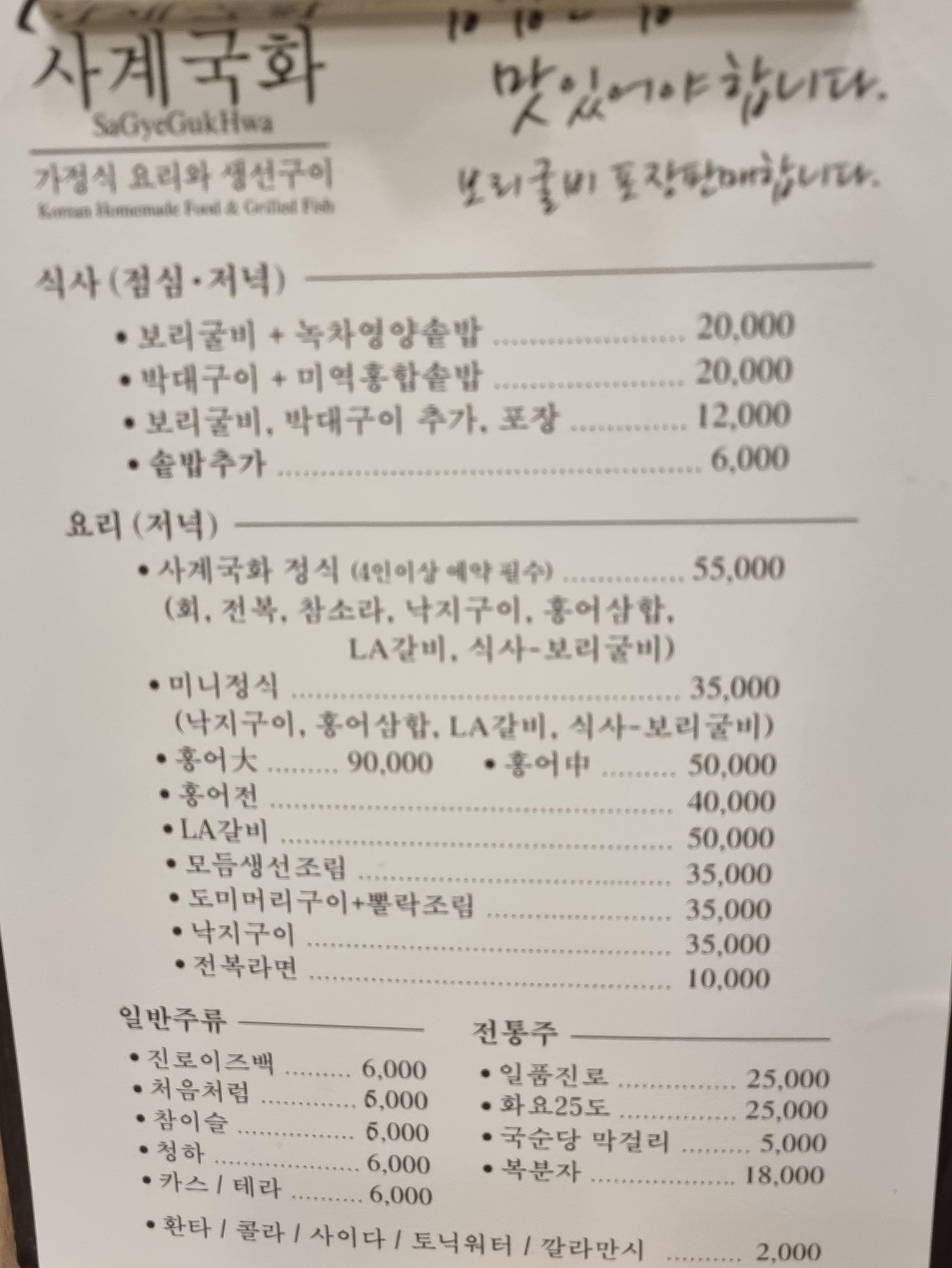 근데 점심시간 땡 치자마자 사람들이 금세 차기 때문에 예약을 하거나 빨리 가도록 하자. 아무리 사람들이 빨리 식사해도 메뉴 자체가 국밥처럼 호로록 먹고 나올 수 있는 게 아니기 때문에 테이블 회전이 느린 편이다. 11시 30분 이후로는 대기해야 하니 당일 오전일지언정 꼭 전화로 예약해보는 것을 추천!!