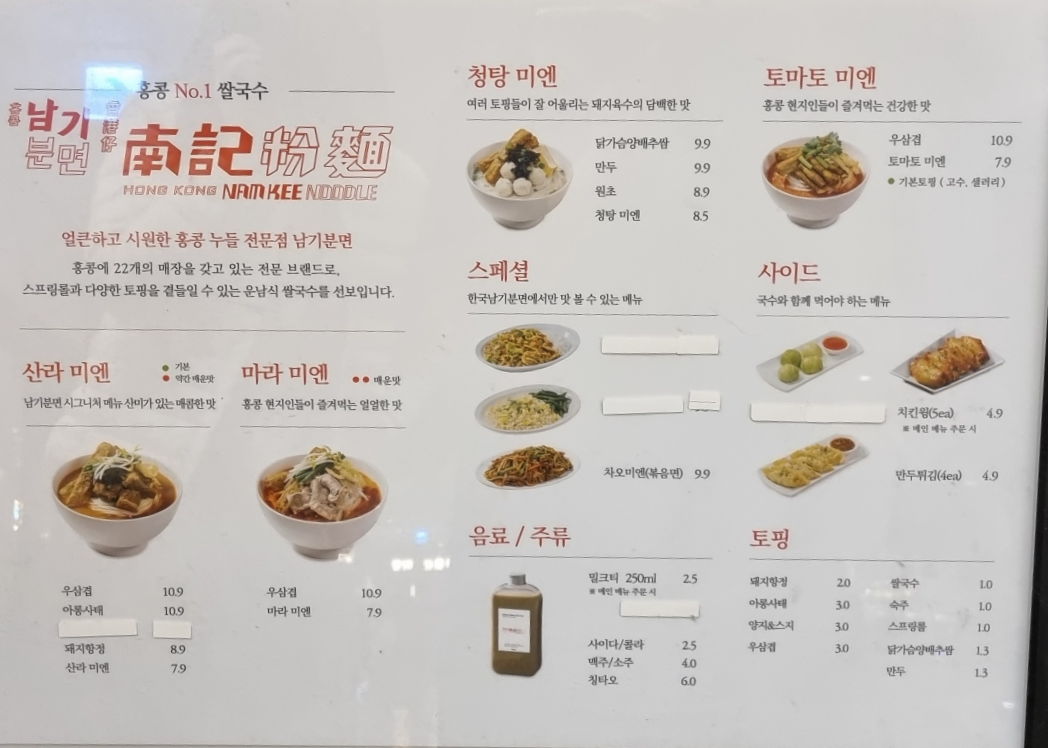 남기분면은 여의도에 ifc몰점과 디스트릭트y점 이렇게 두 군데가 있다. ifc몰은 ifc몰 안에 있다기보다는 지하철역 연결 통로에 위치해 있는데, 점심시간에 좀만 늦게 가도 사람이 많아 웨이팅을 해야 한다. 그래서 주로 디스트릭트y점을 더 자주간다.