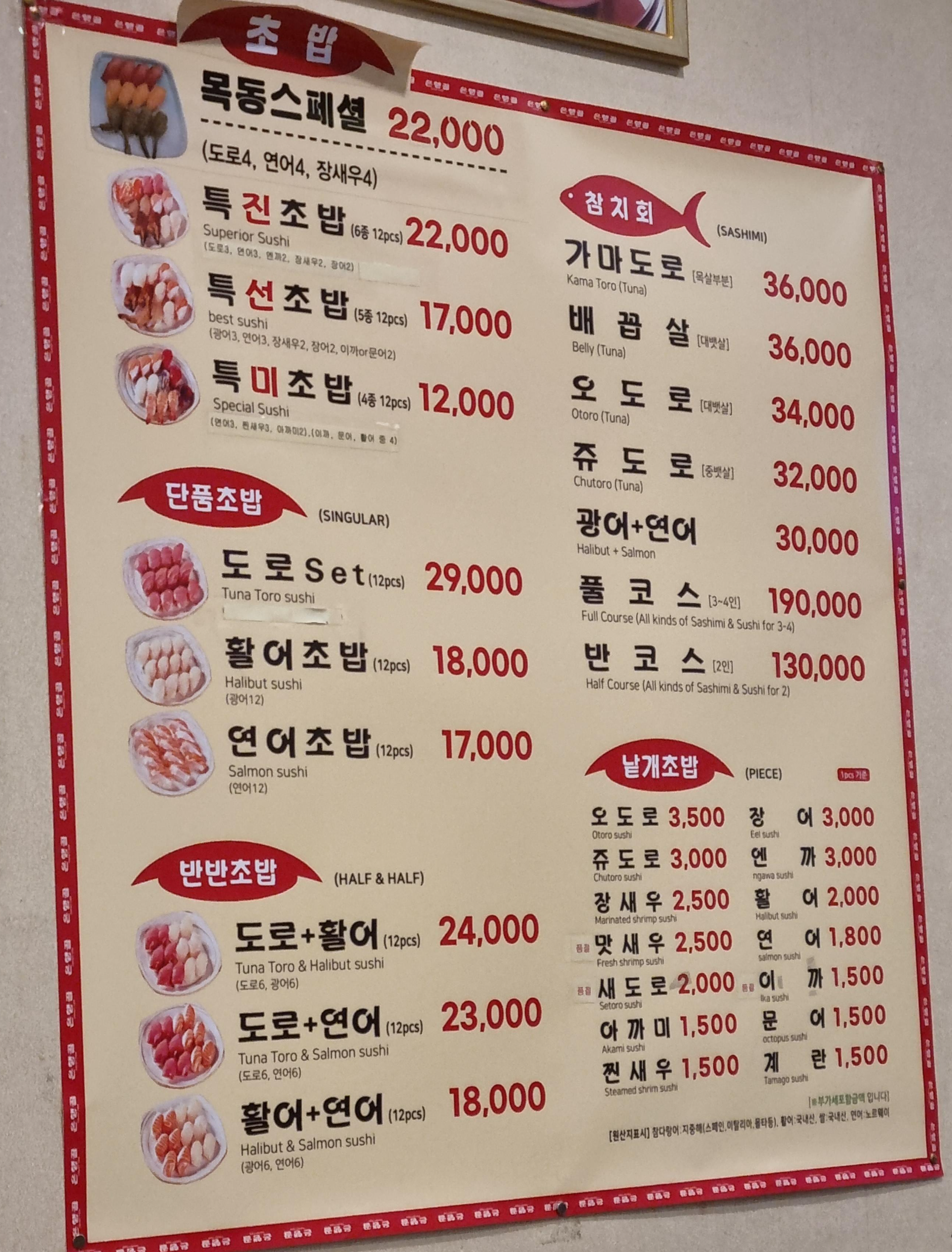 맛은 뭐... 말해 뭐하나 싶을 정도로 맛있다. 목동점은 다른 지점과 달리 밥에 초가 조금 더 많이 들어가서 맛이 더 강하다. 그래서 밥이 조금 더 잘 흘러내리는데 나는 이 지점이 제일 취향에 잘 맞는다.