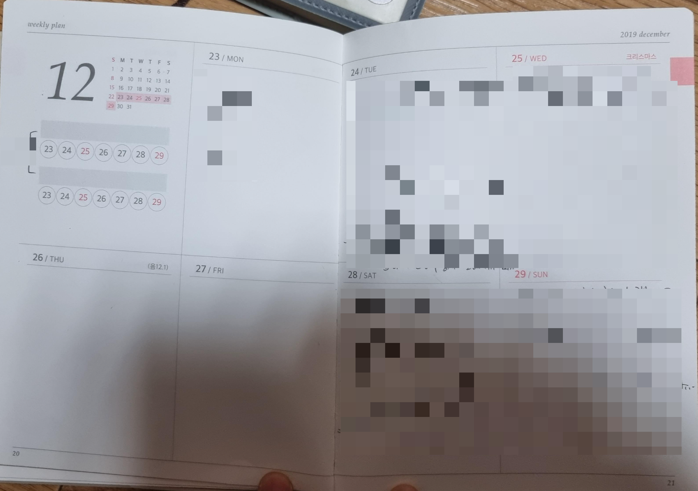 벌써 연말이다. 나는 주로 매년 11월에 다이어리를 새로 사는데, 새해의 첫 달보다는 연말을 이대로 보내고 싶지 않다는 마음으로 동기부여가 되는 달이기 때문이다. 다행히도 다이어리는 전년