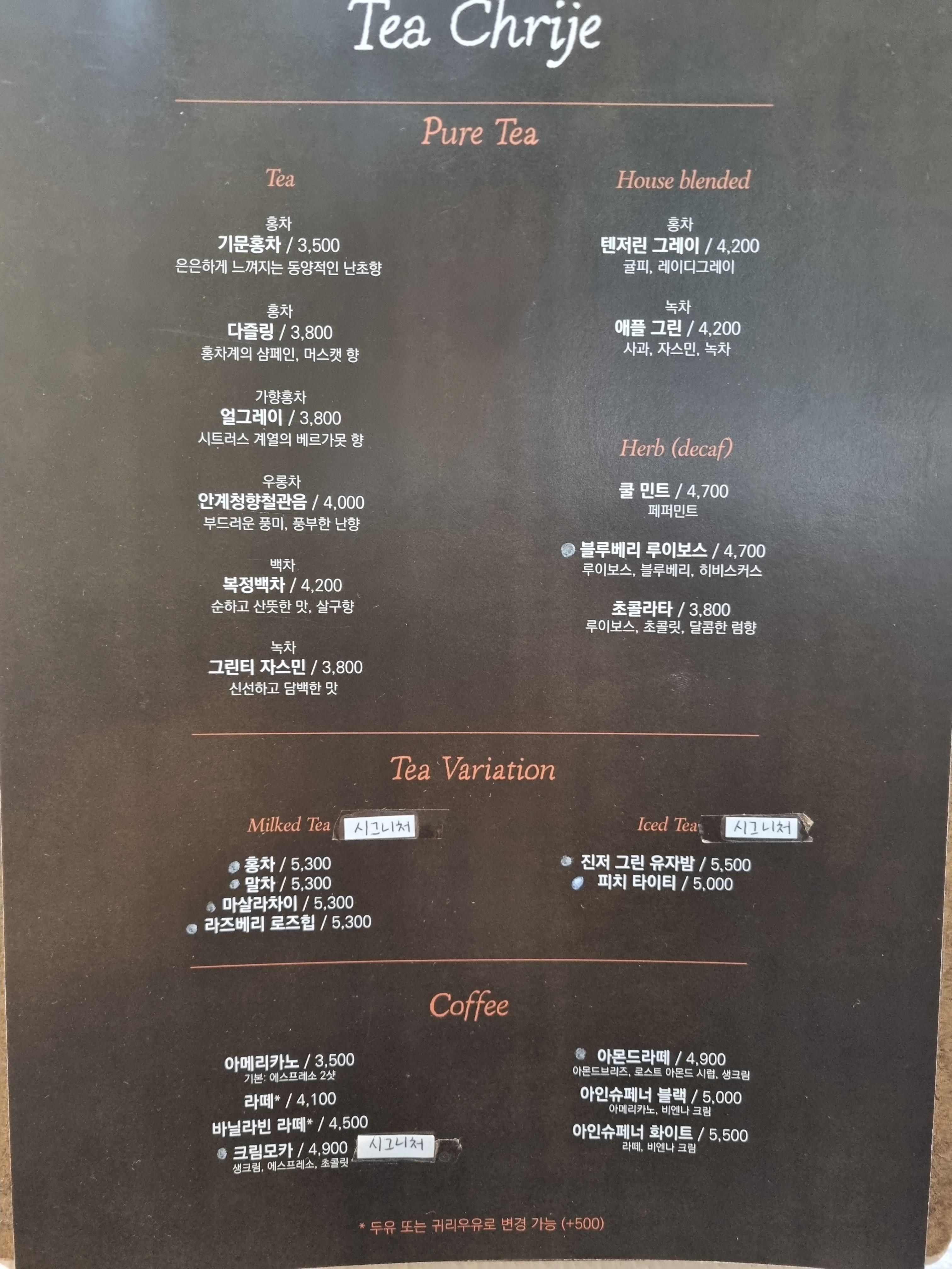 시그니처는 milked tea와 iced tea. 커피 중엔 유일하게 크림모카가 시그니처다.