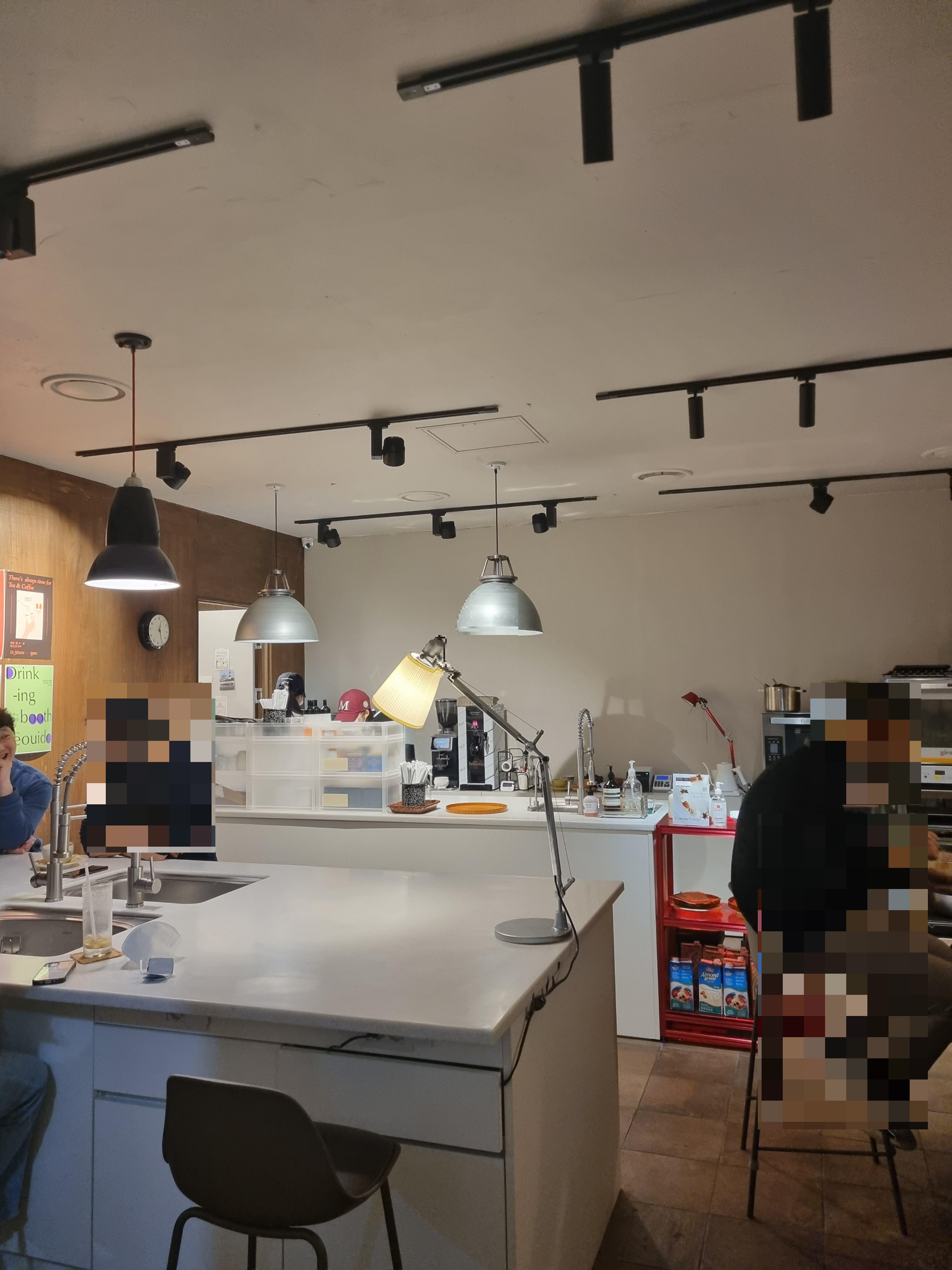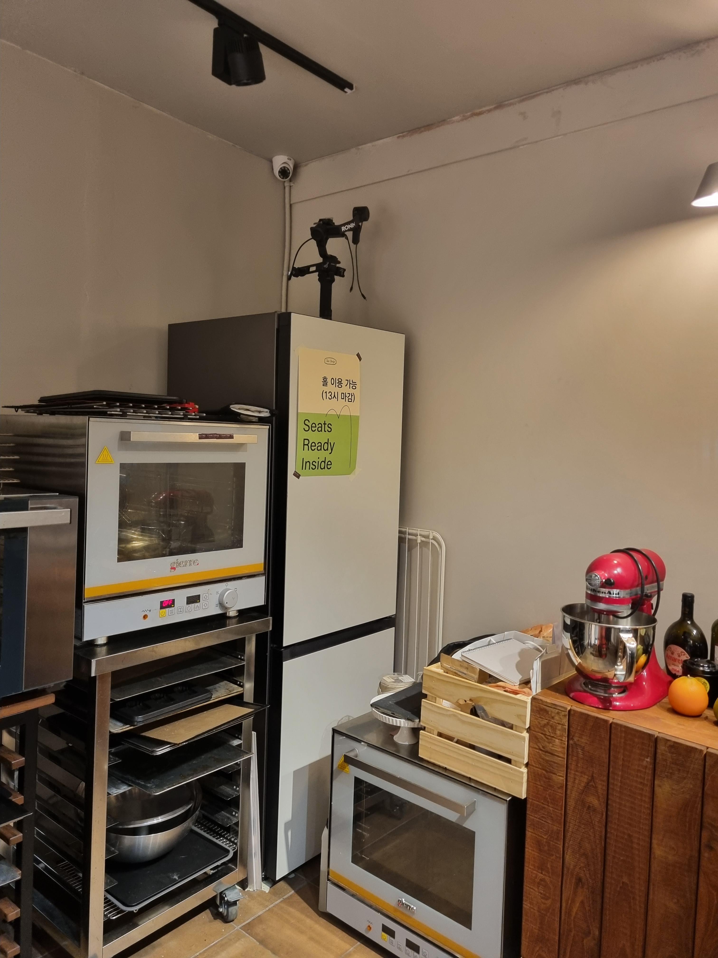 테이블은 큰 테이블 한 개 작은 테이블 한 개뿐. 큰 테이블은 싱크대가 달려있는 최대 6인석 정도로 진짜 뭐 원데이 쿠킹 클래스 할 수 있을 거 같다.