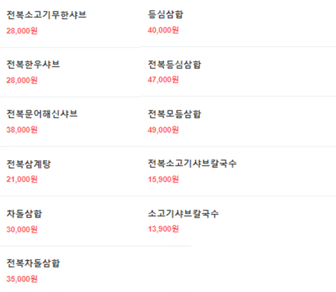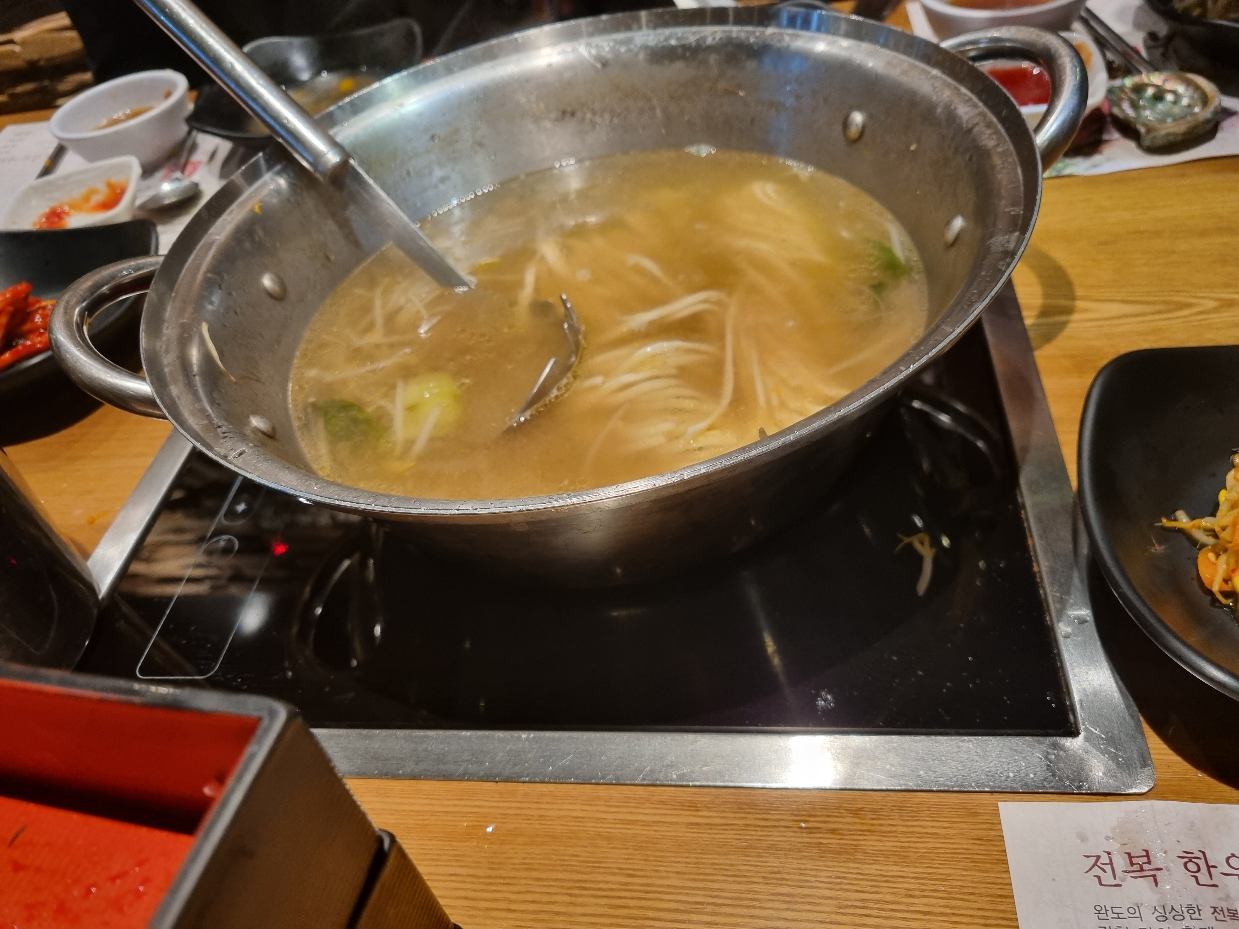 메인은 '전복'이다!! 점심 때는 주로 샤브샤브 or 삼계탕을 먹는데, 둘 다 퀄리티가 매우 괜찮음. 점심 때는 주로 전복소고기샤브칼국수나 소고기샤브칼국수를 먹으면 인당 15000원 수준으로 완벽하게 한 끼를 해결할 수 있다!!