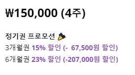 멤버십은 보통 1개월 단위로 구성되고, 장기적으로 구매할수록 저렴해지는 패키지 형식. 멤버십을 구매한다는 건 결국 하나의 세션에 참여한다는 것이다. 요일, 시간대, 리더, 레벨을 선택하고 멤버십 기간을 선택하면 끝!