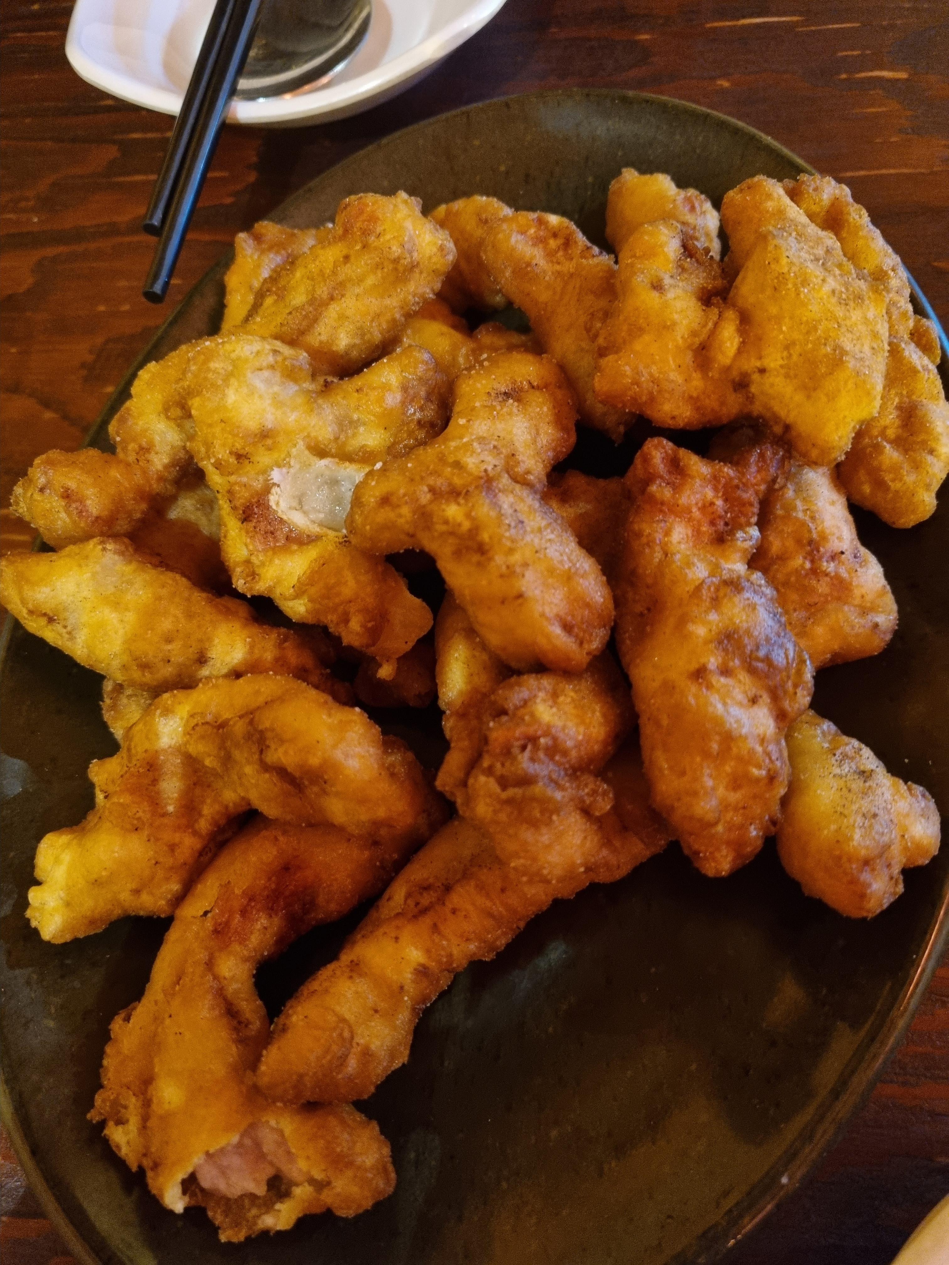 하여튼 존맛탱!!!이다. 사실 별로 기대 안 했다. 나는 원래 튀김을 크게 좋아하는 편이 아니고 가격도 저렴한 편이기 때문에. 근데 튀김도 바삭하고 얇게 잘 튀겨지고, 겉은 바삭 안은 뜨겁부드러워서 계속 들어갔다. 대만식 고기튀김의 소금과 후추 맛은 딱 맥주를 부르는 맛이었고, 깐풍 가지의 튀김 안의 가지는 너무 부드럽고 깐풍 소스와 잘 어우러졌다.