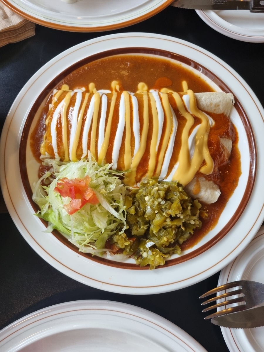 좌석이 좀 가까이 있어사 만약 옆에 단체테이블이면 시끄러울 수 있는데 소규모로 오면 천천히 대화를 나누며 먹을 수 있는 공간이다. 너무 크지도 작지도 않고 점원들도 차분한 느낌이 있어 분위기가 마음에 들었던 멕시코 다이너.