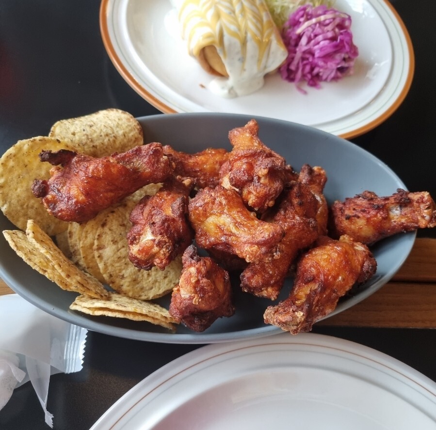 사실 후추맛은 잘 안 나고, 그냥 버펄로윙 느낌. 나초도 함께 나온다. 스리자차 소스는 각 테이블에 있으니 찍어 먹으면 된다.