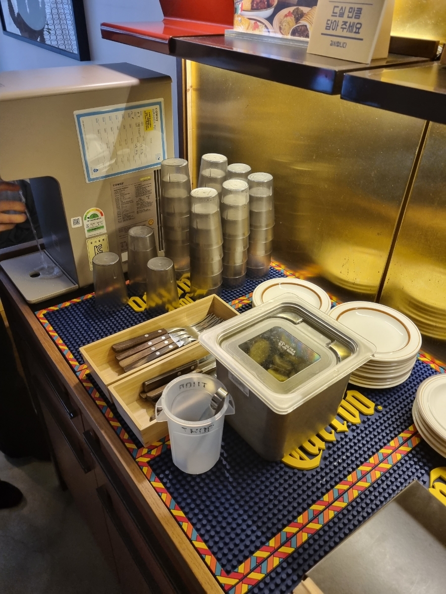 가게 맨 안쪽에 셀프바가 있어 식기와 피클, 휴지, 물 등은 다 셀프이다.