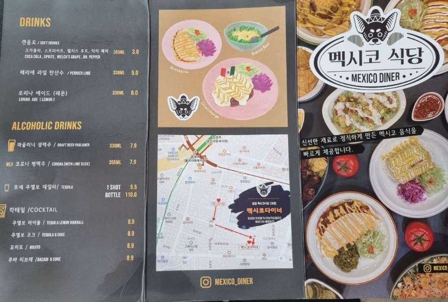합정역 7번 출구에서 10 ~15분 정도 걸어가면 있는 멕시코 다이너. 멕시코 식당의 2호점으로 메뉴와 가격대는 비슷하다고 한다.