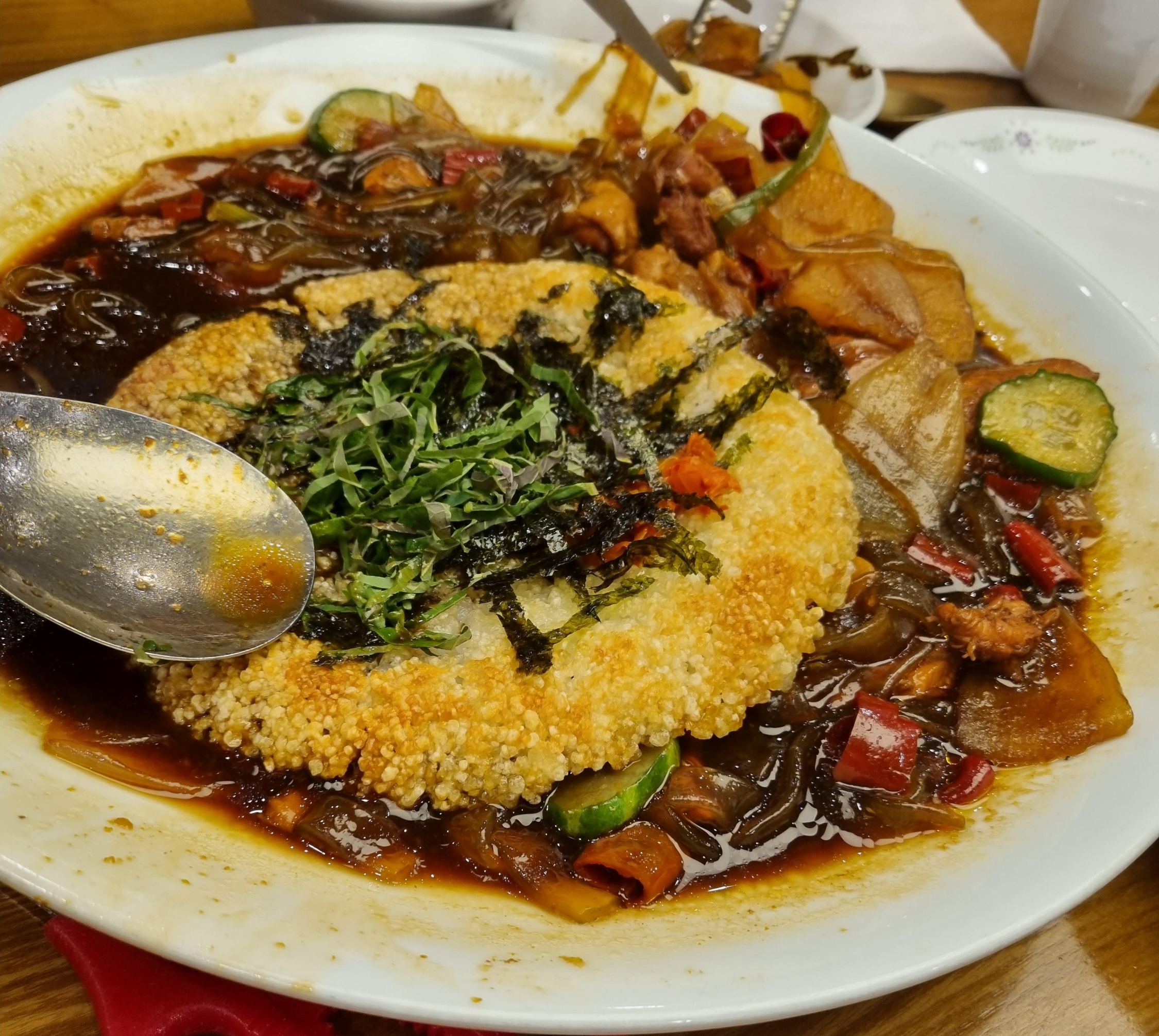 누룽지는 따로 담겨 나오기 때문에, 봉추찜닭을 좀 먹다가 어느 정도 닭을 많이 먹고 국물이 남았을 때에 누룽지를 섞어 비벼 먹으면 된다. 확실히 고소한 맛이라 볶음밥 대용으로 먹음 직하다.