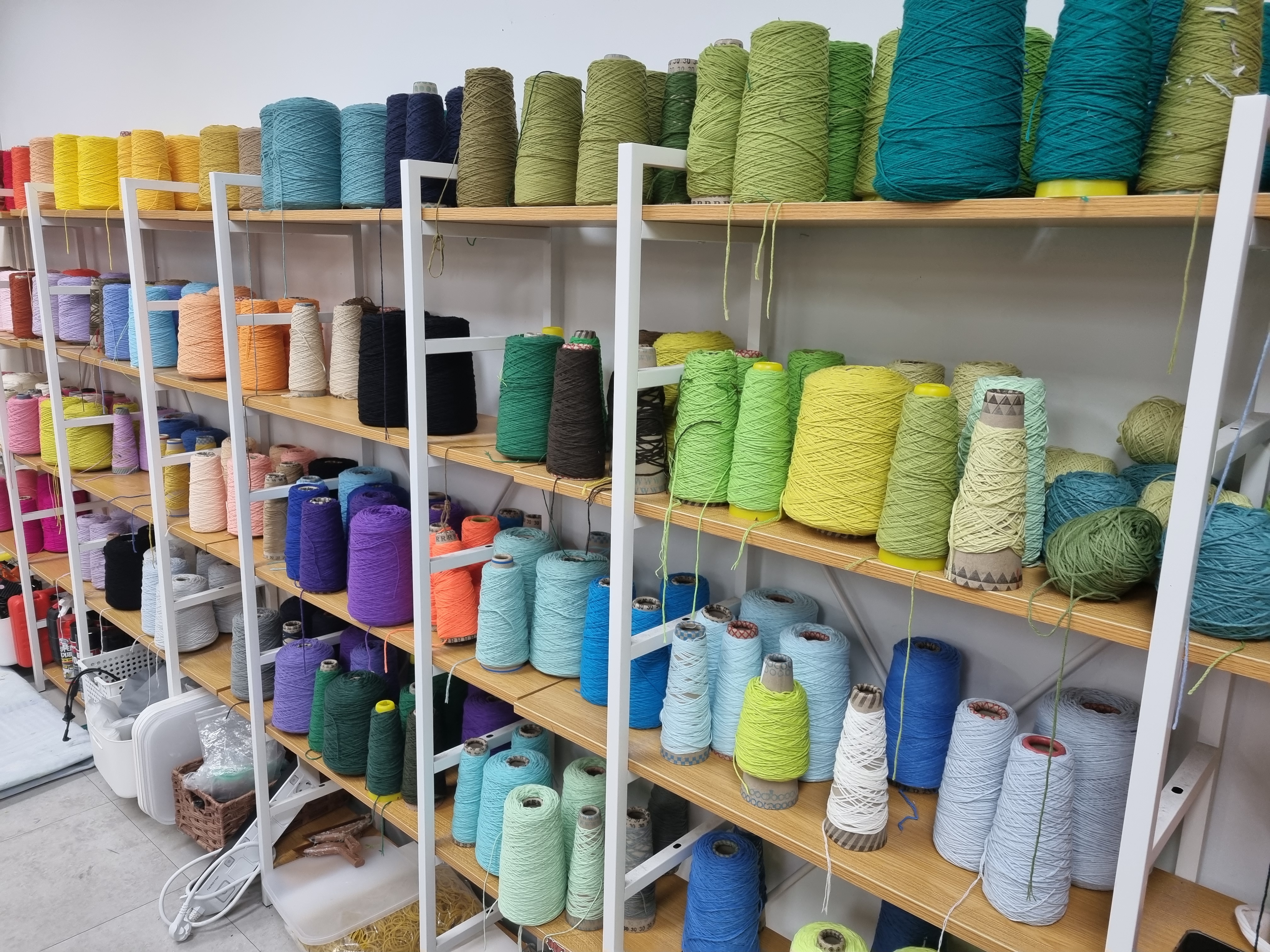 터프팅이란, 천 위의 실을 걸어 짜는 직조 기술로, 요즘은 터프팅건이라는 기계를 사용한다.