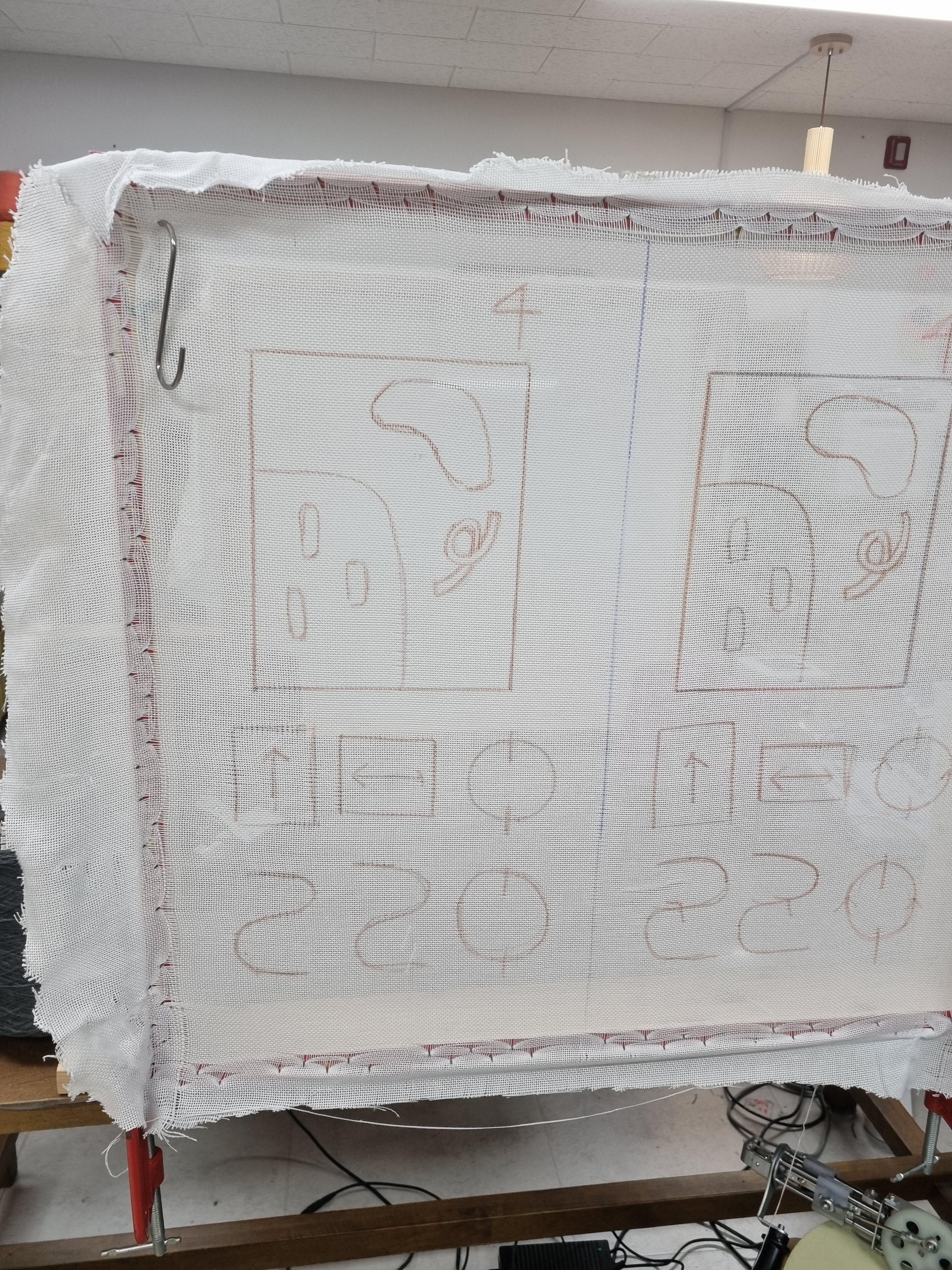 도안의 색깔과 각 실의 조합을 생각했으면, 이제 직접 터프팅을 할 차례!