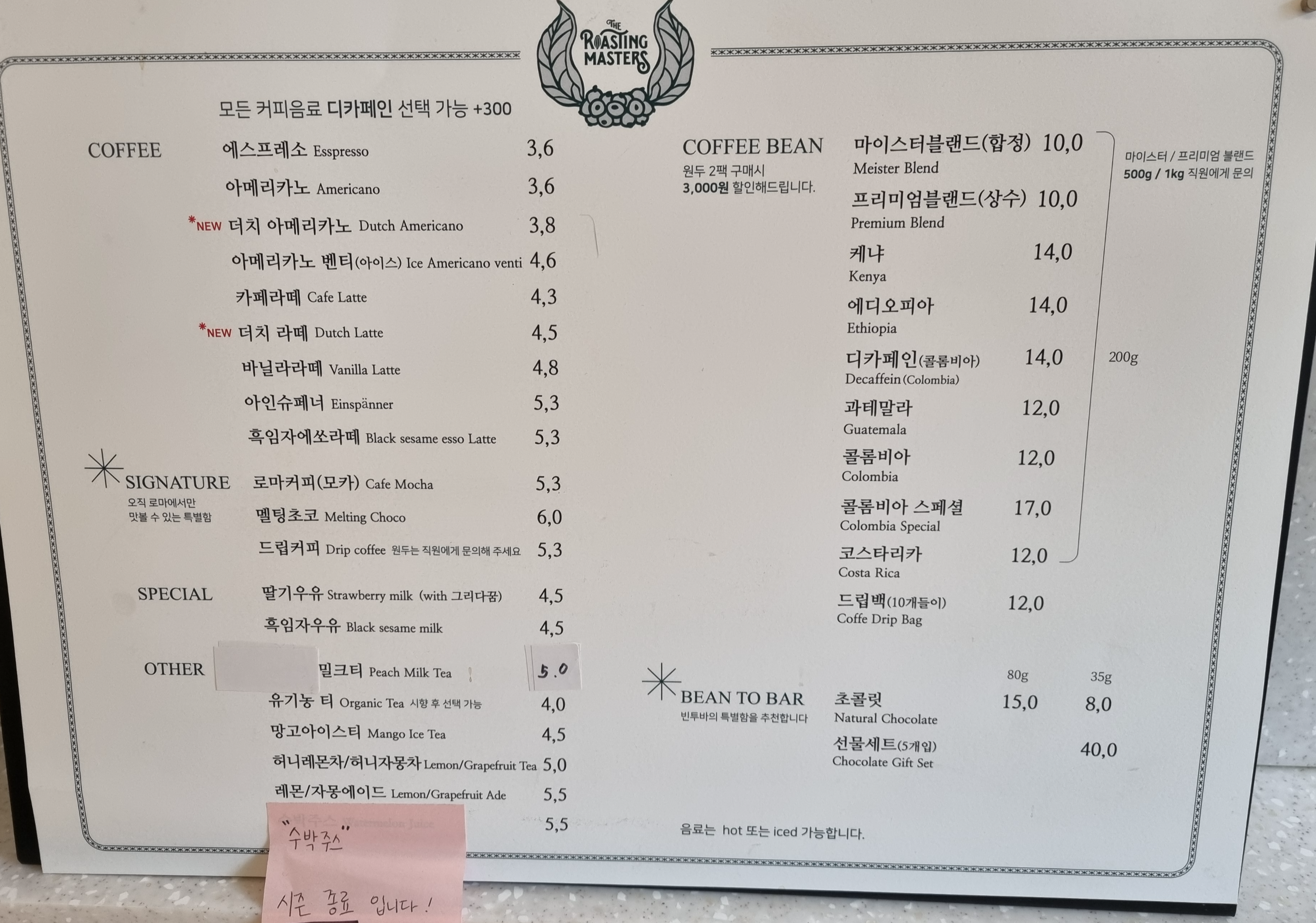 로스팅마스터즈만의 원두 조합으로 합정/상수 원두를 선택할 수 있다는 것도 흥미로웠다.