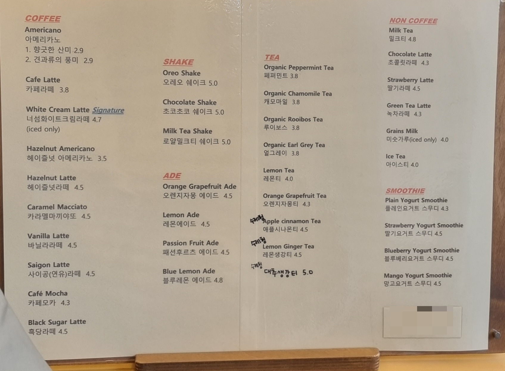 하지만 다양한 음료와 원두에 따른 음료를 팔기 때문에 가격이 아깝지 않다.