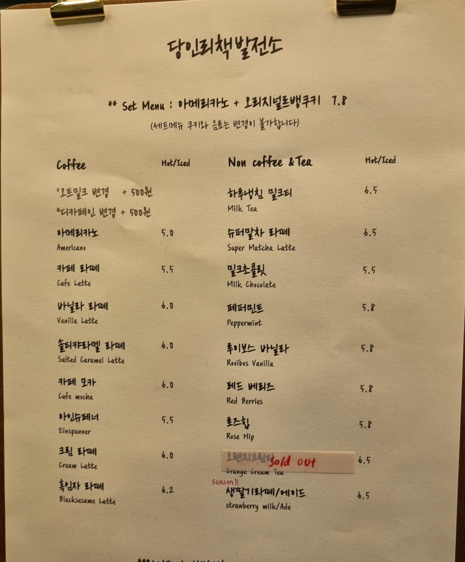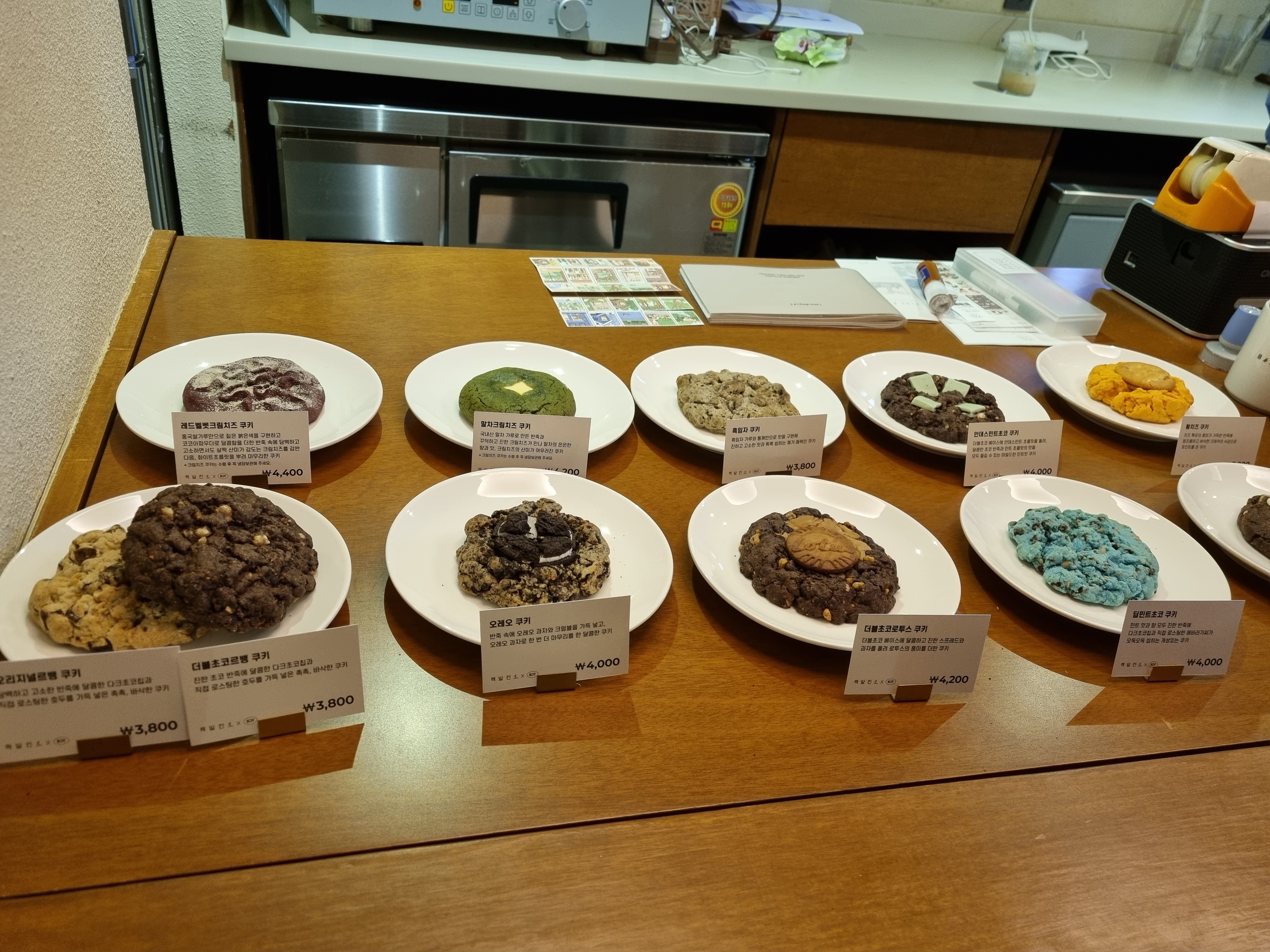 쿠키가 종류별로 있었다. 사실 음료나 쿠키나 가격이 저렴한 편은 아닌데, 요즘 망원 물가가 워낙 비싸니.. 그러려니 했다.
