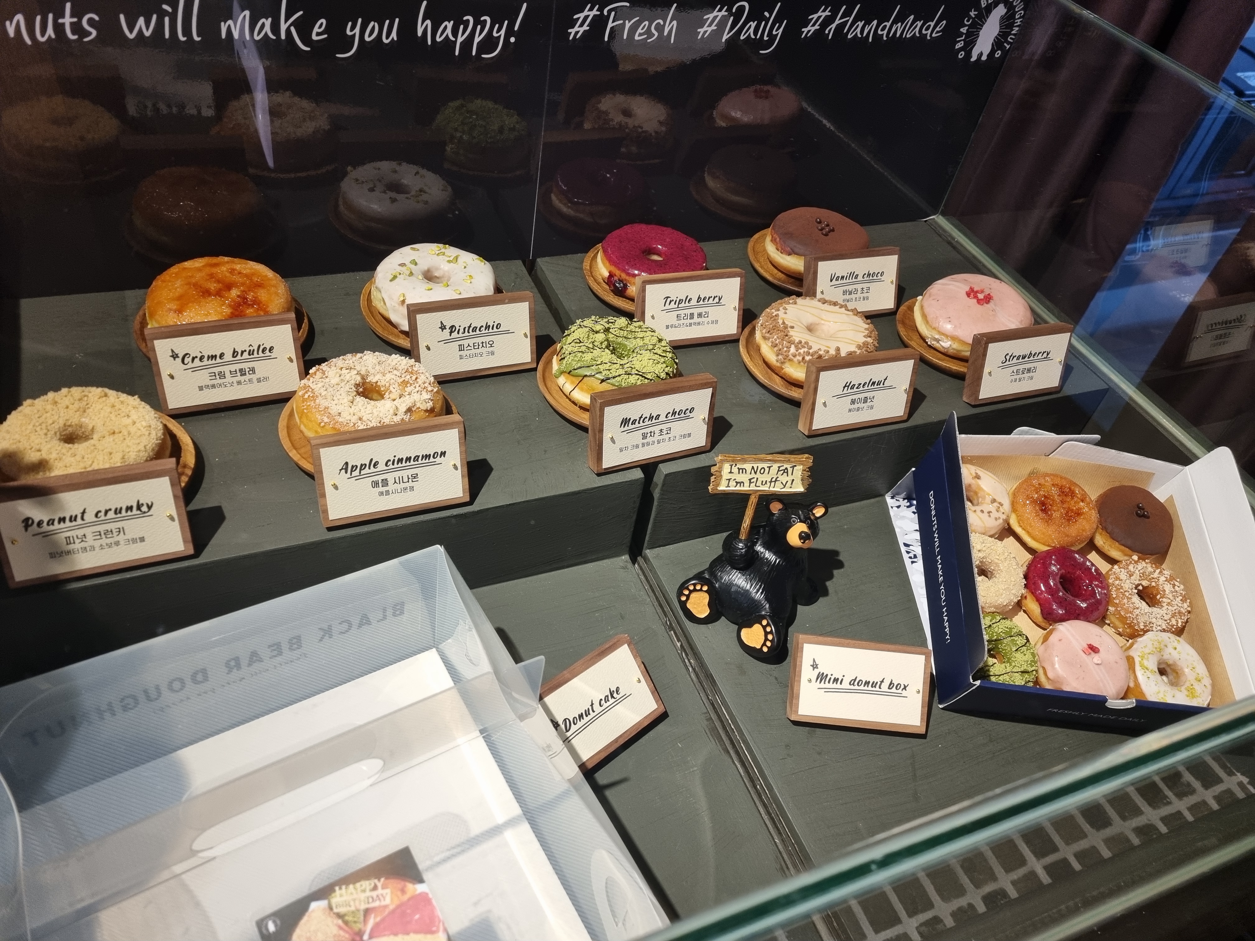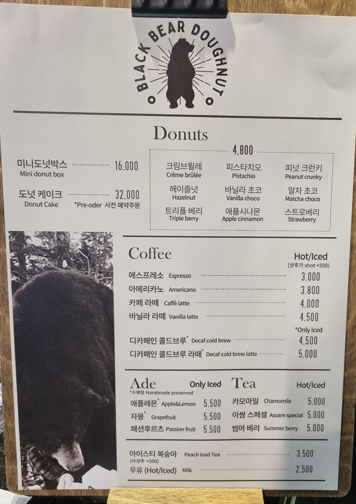 근데 검은 곰이 그려진 패키지가 너무 귀엽다. 가볍게 앉아서 수제도넛 하나에 커피 한 잔 하기에 좋을 듯.