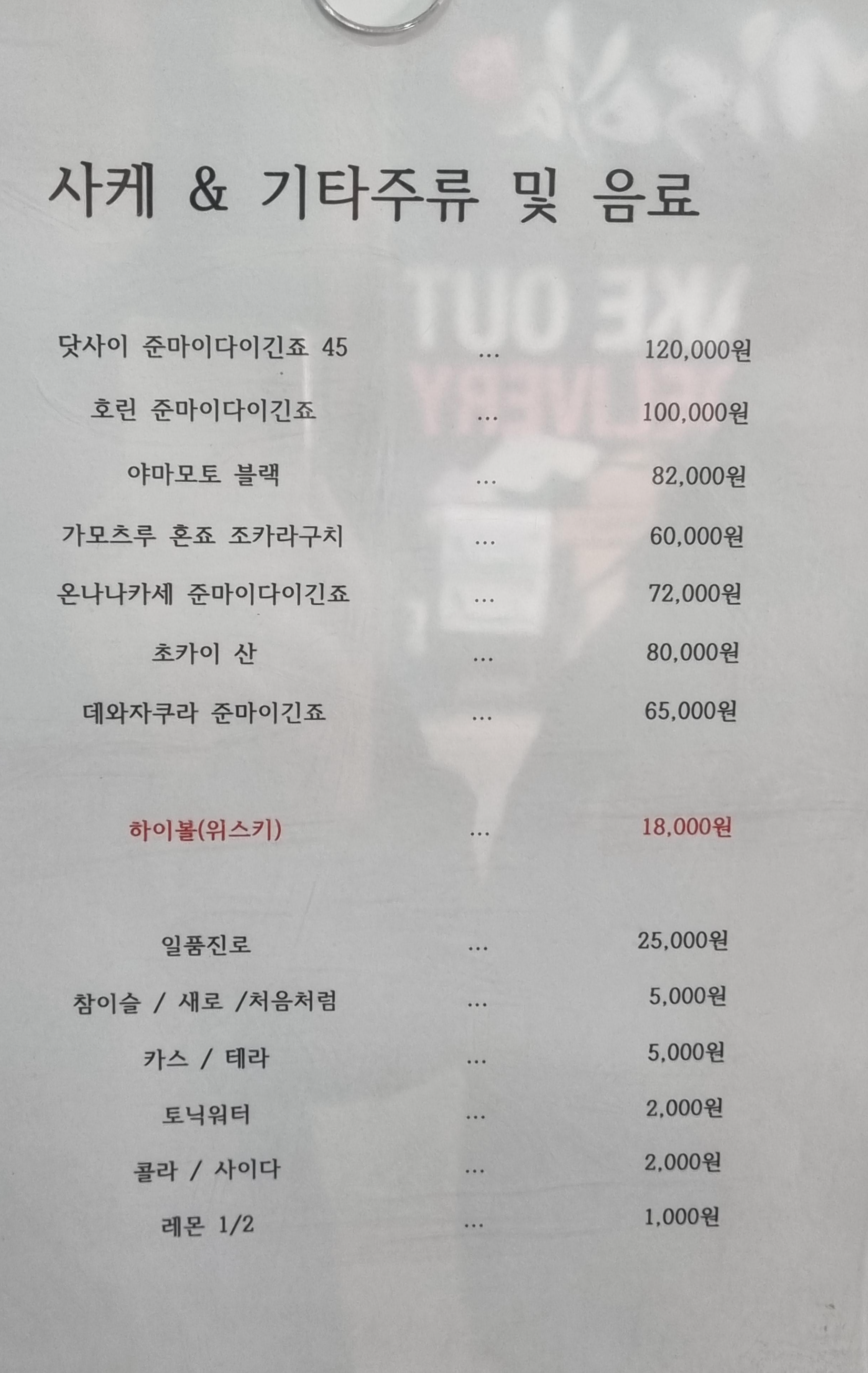 특히 저녁에는 하이볼, 사케, 와인, 양주까지 판매한다!!