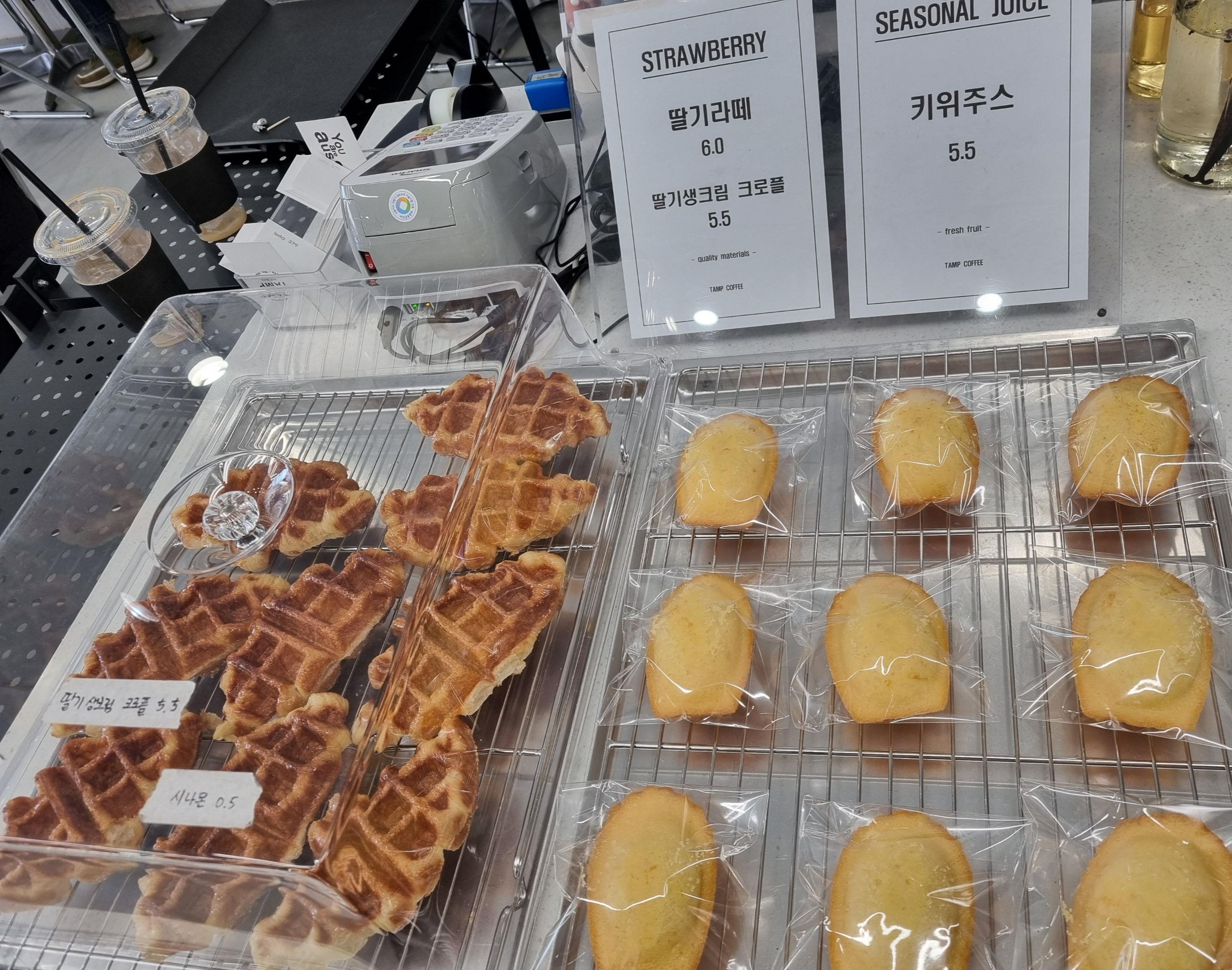 디카페인도 전메뉴 가능하고, 배치브루나 시즌 주스같이 탬프만의 특색 있는 음료들도 판매한다.