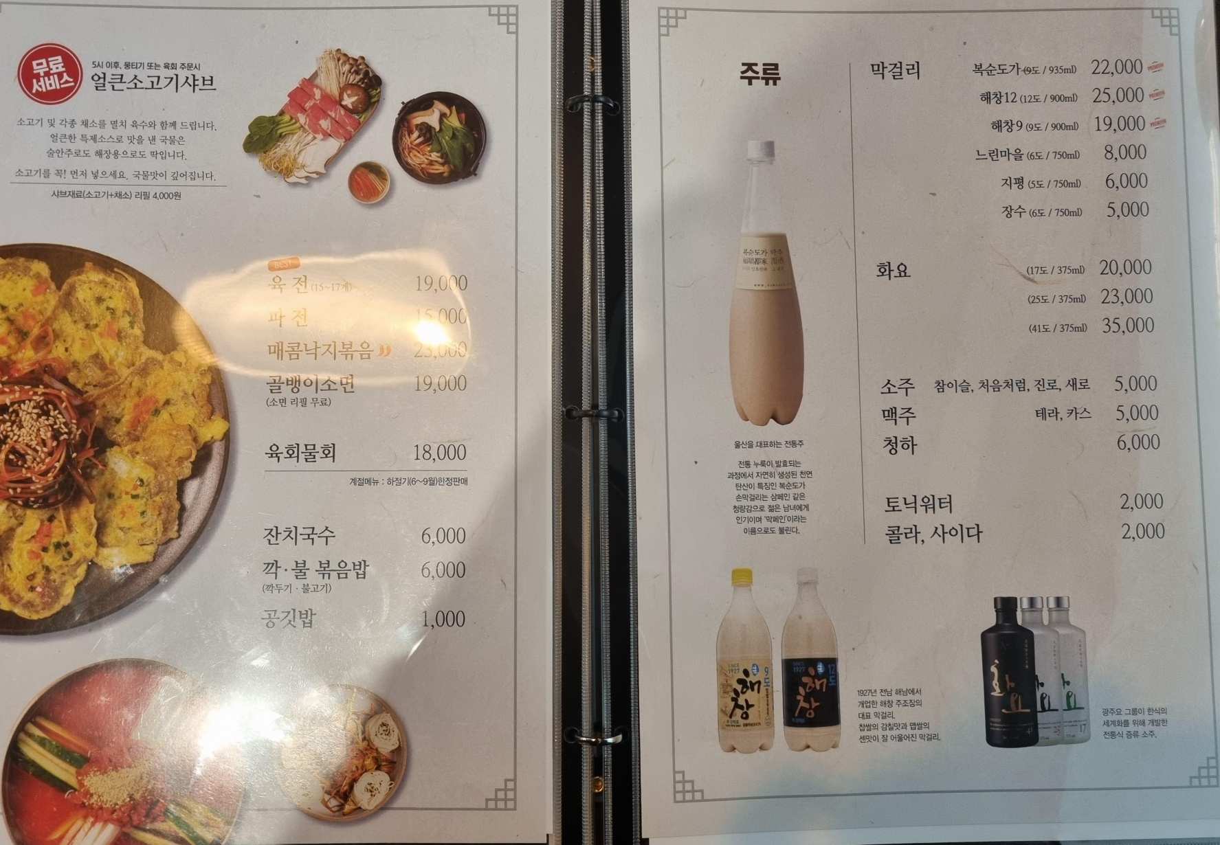 육회와 뭉티기, 육전을 파는 만큼 다양한 막걸리 종류!!