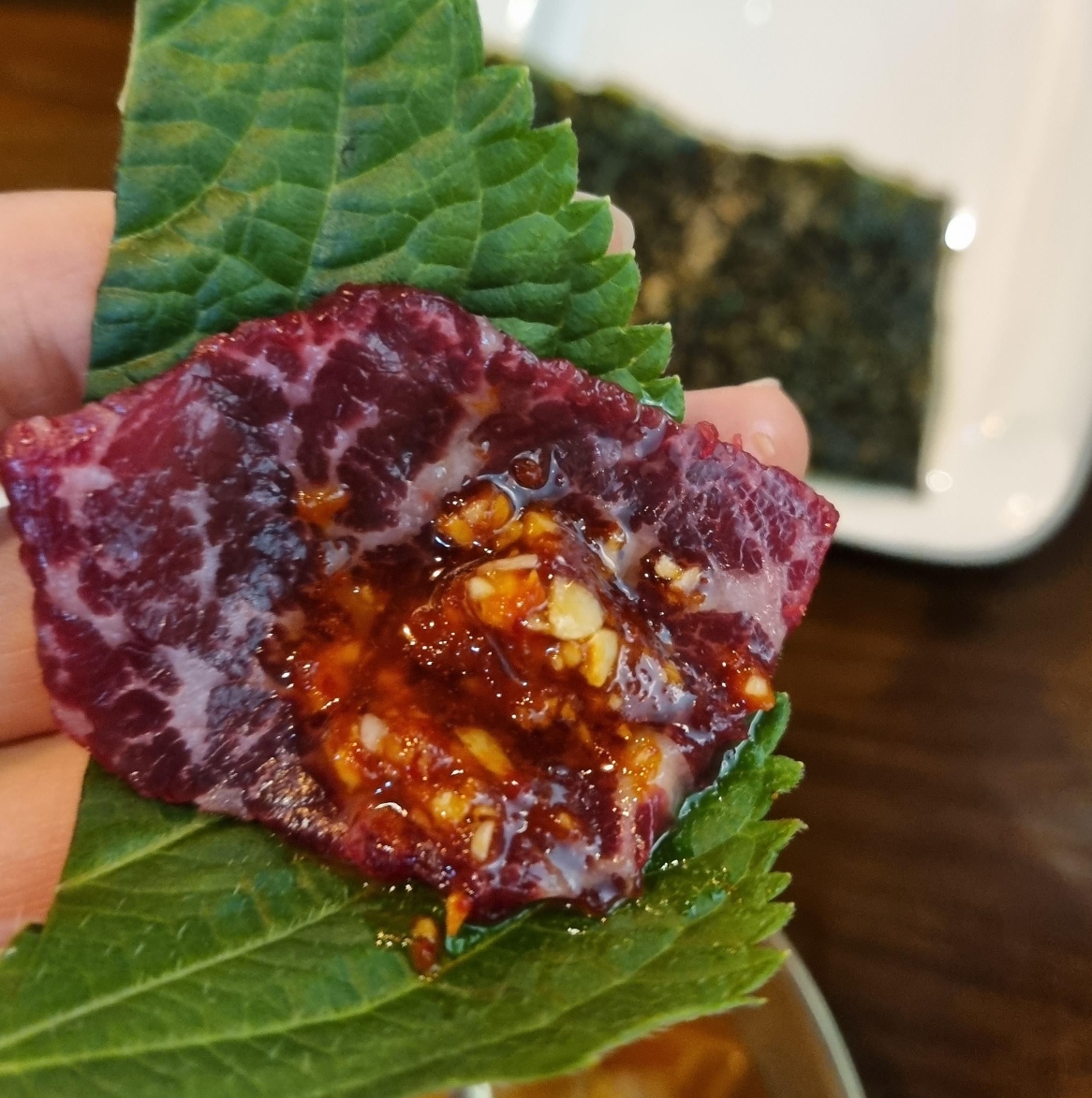 뭉티기 처음 먹어보는데 너무 맛있다!