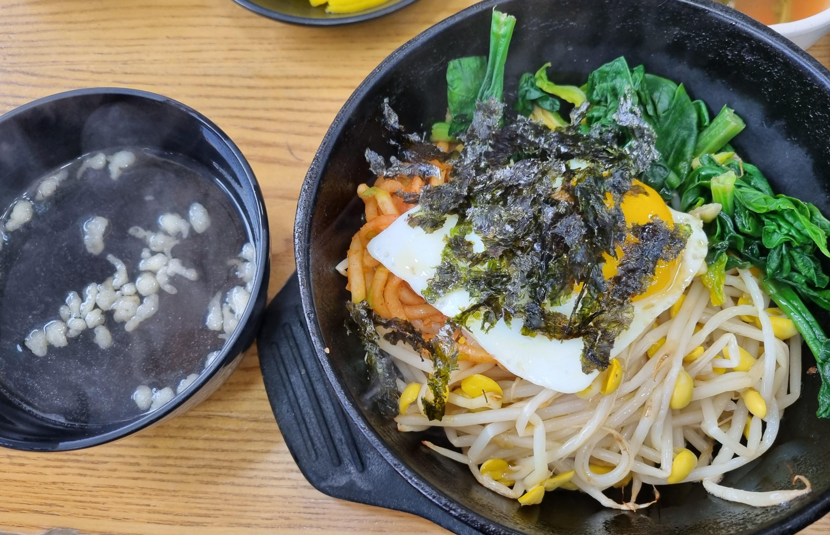 시원한 메밀육수와 뜨끈한 돌솥비빔밥을 같이 판다는 건 좀 irony가 느껴졌다.