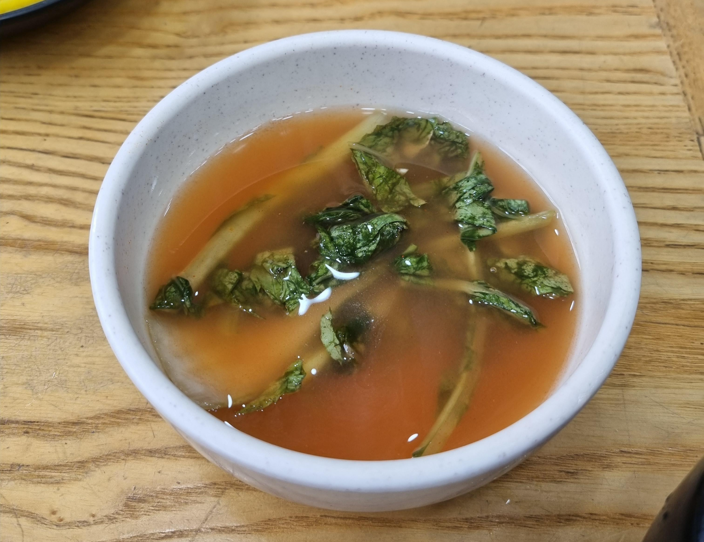 기본 밑반찬으로는 김치와 단무지, 그리고 열무김칫국이 나온다.