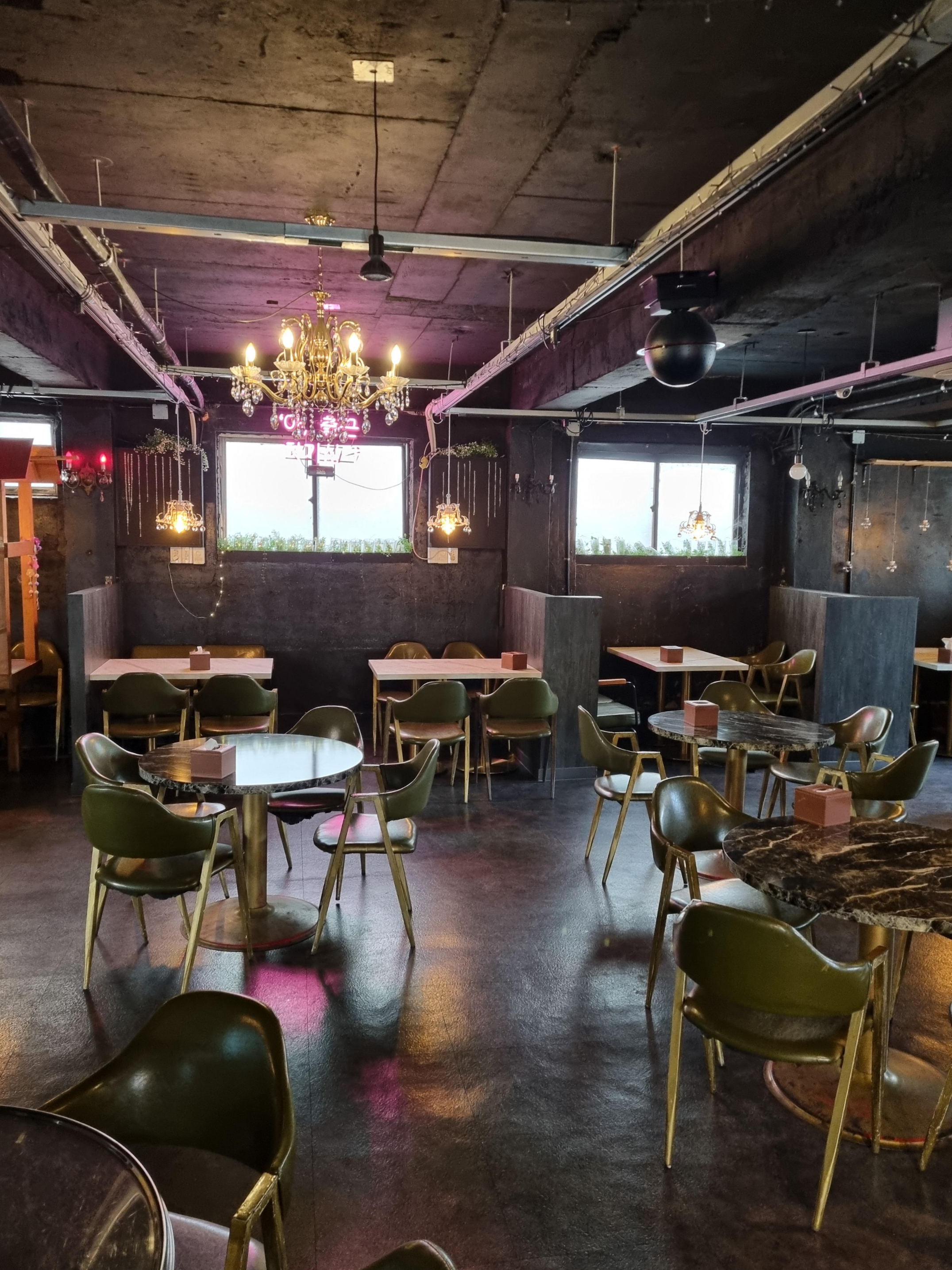 말그대로 넓고 괄괄한 "포차" 감성과 샹들리에와 독립된 공간으로 꾸린 "살롱"의 분위기가 딱 뒤섞은 느낌이라, 공간이 어떤 분위기를 지향하는지를 너무나도 잘 알 수 있었다.
