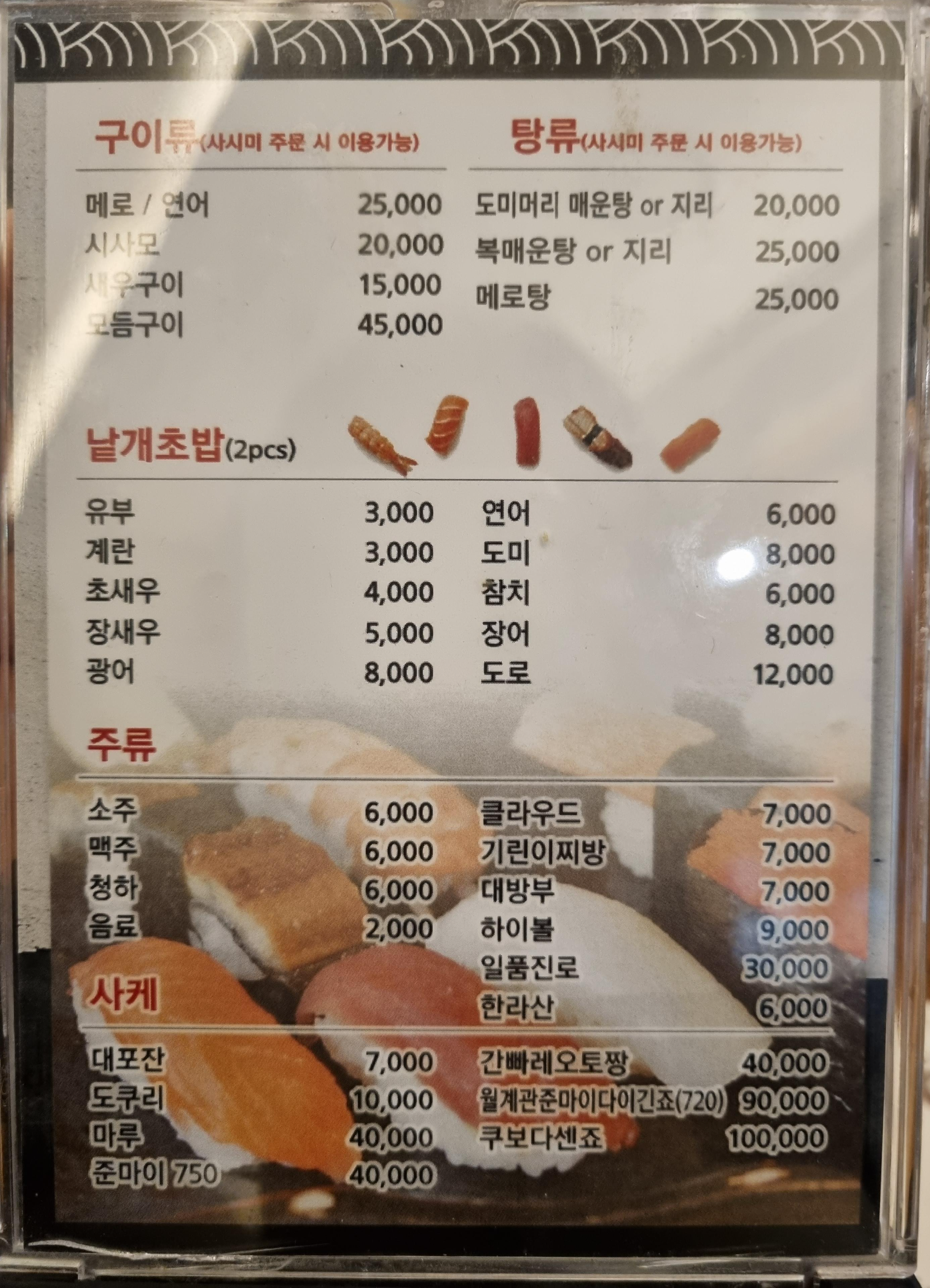여의도 초밥 맛집다운 다양한 모듬 구성 이외에도 여의도 회식장소로서 구이, 사시미도 다양하게 판다!