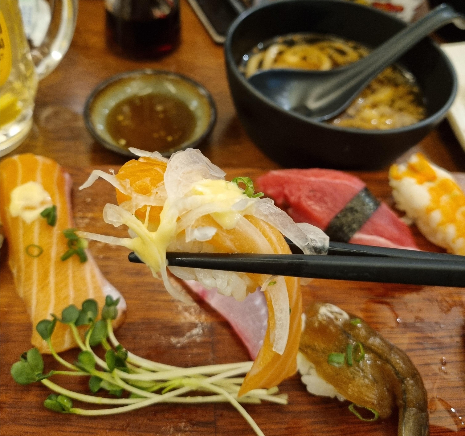 우동 한 젓가락에 하이벌 한 입, 튀김, 초밥에 하이볼 한 모금 하다 보니 금세 다 먹어 아쉬웠다.