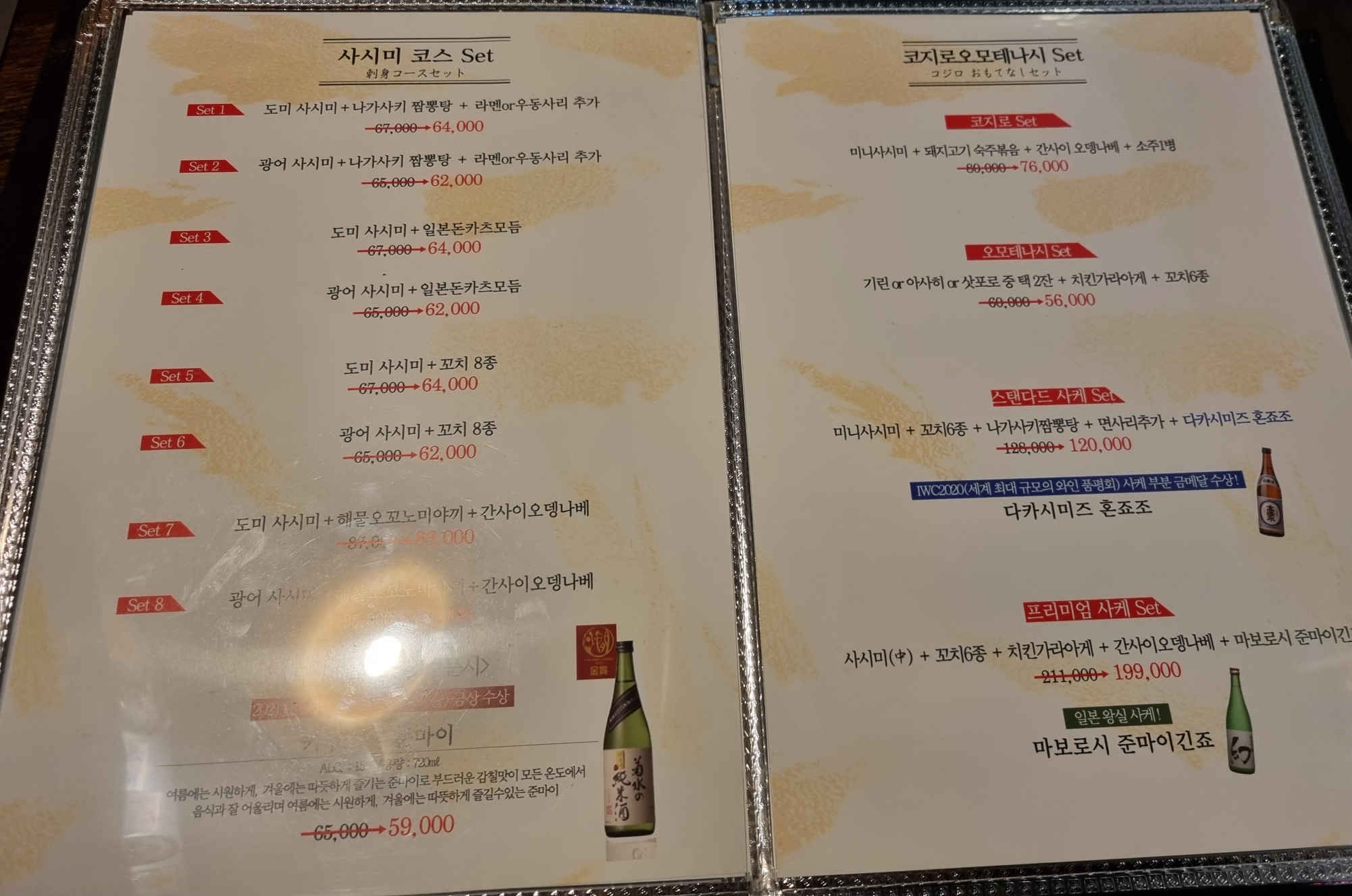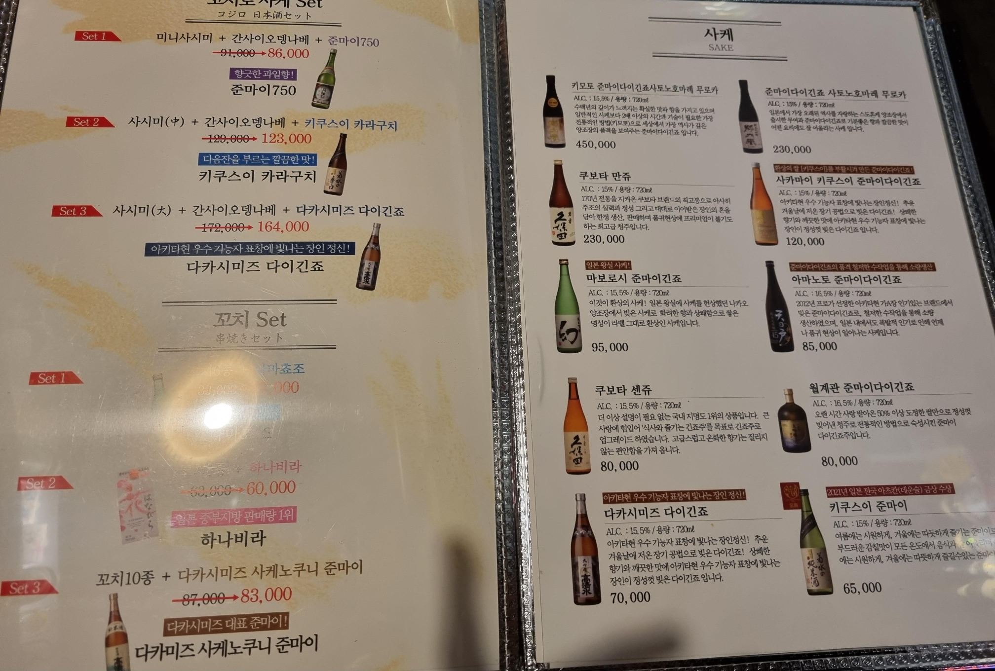 안주와 사케의 세트 구성도 다양해서 좋았다.