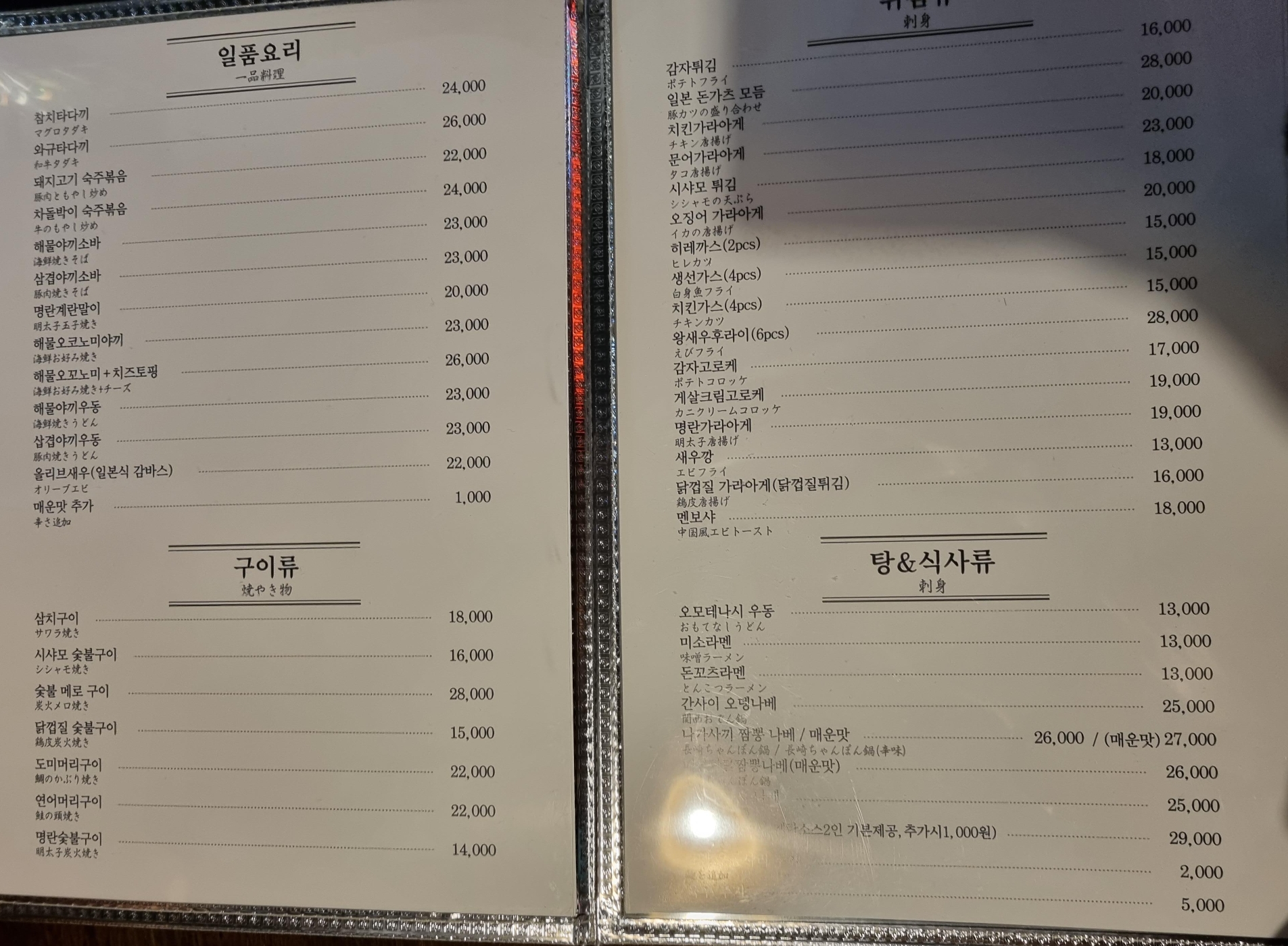 발산역 이자카야에서 팔 법한 메뉴로, 메뉴가 막 특이하진 않다.