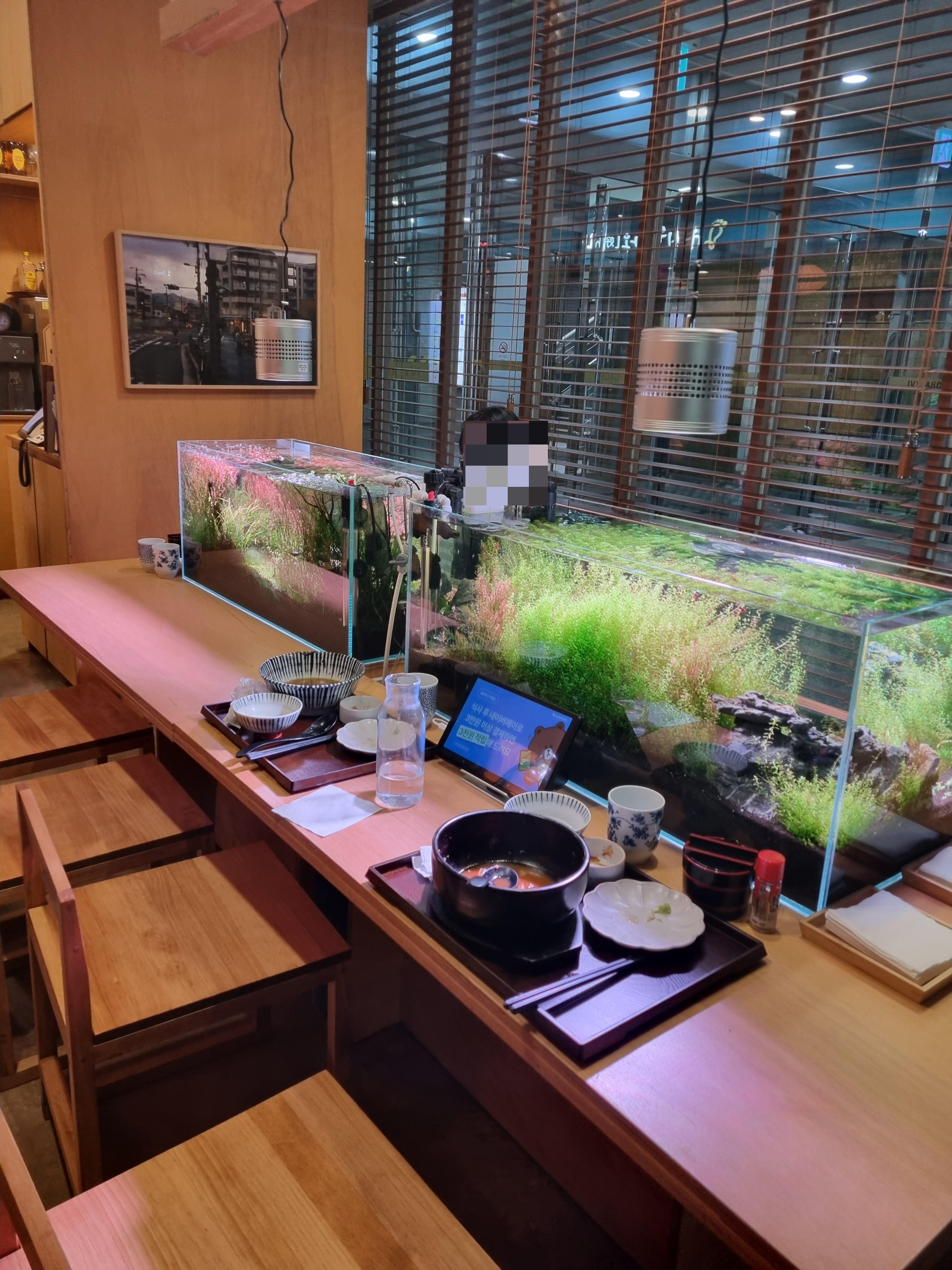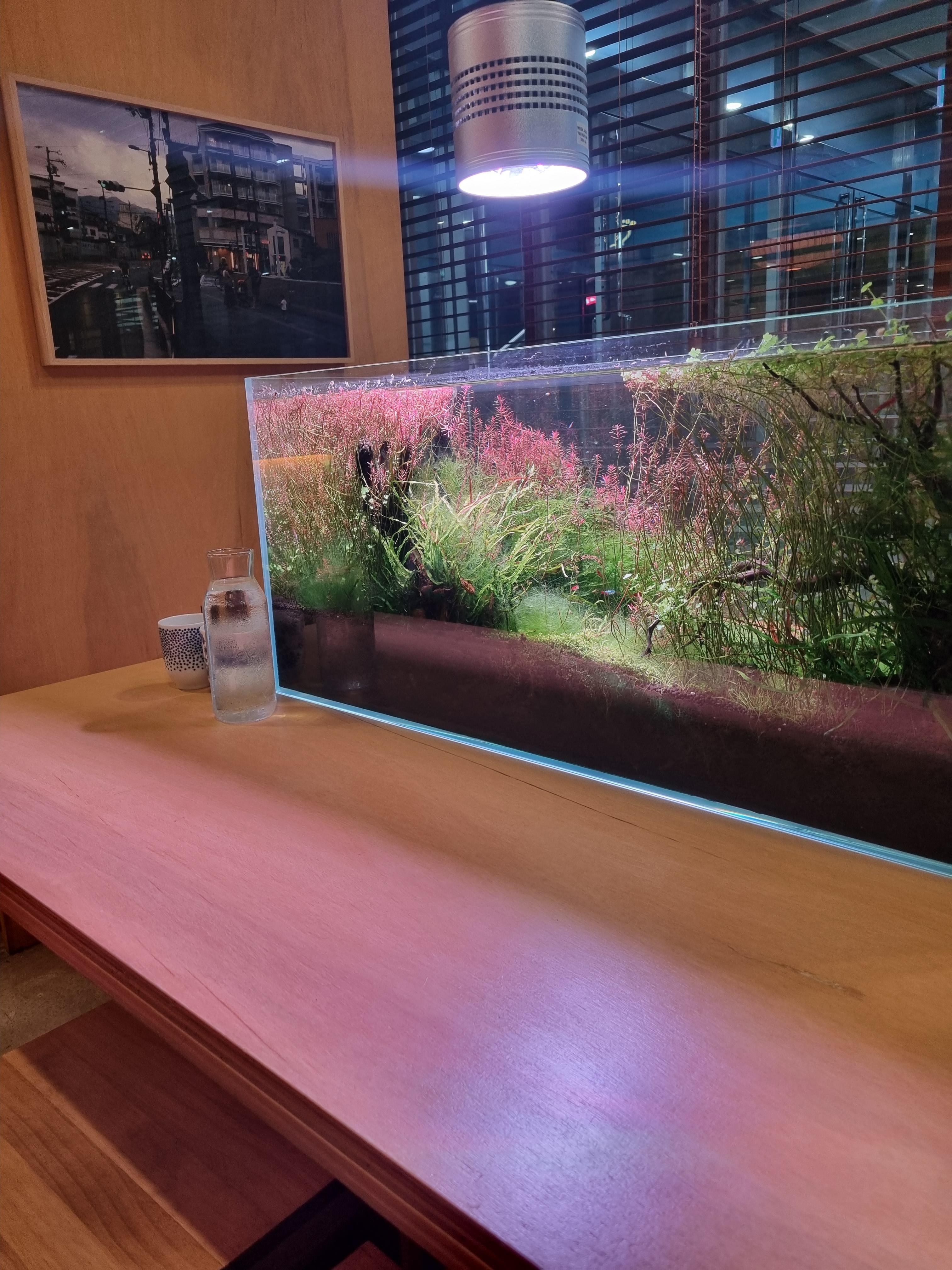 어항 앞 기다란 테이블에서 양옆에 앉아 대화하기에도 좋은 여의도 분위기 좋은 맛집 반슈