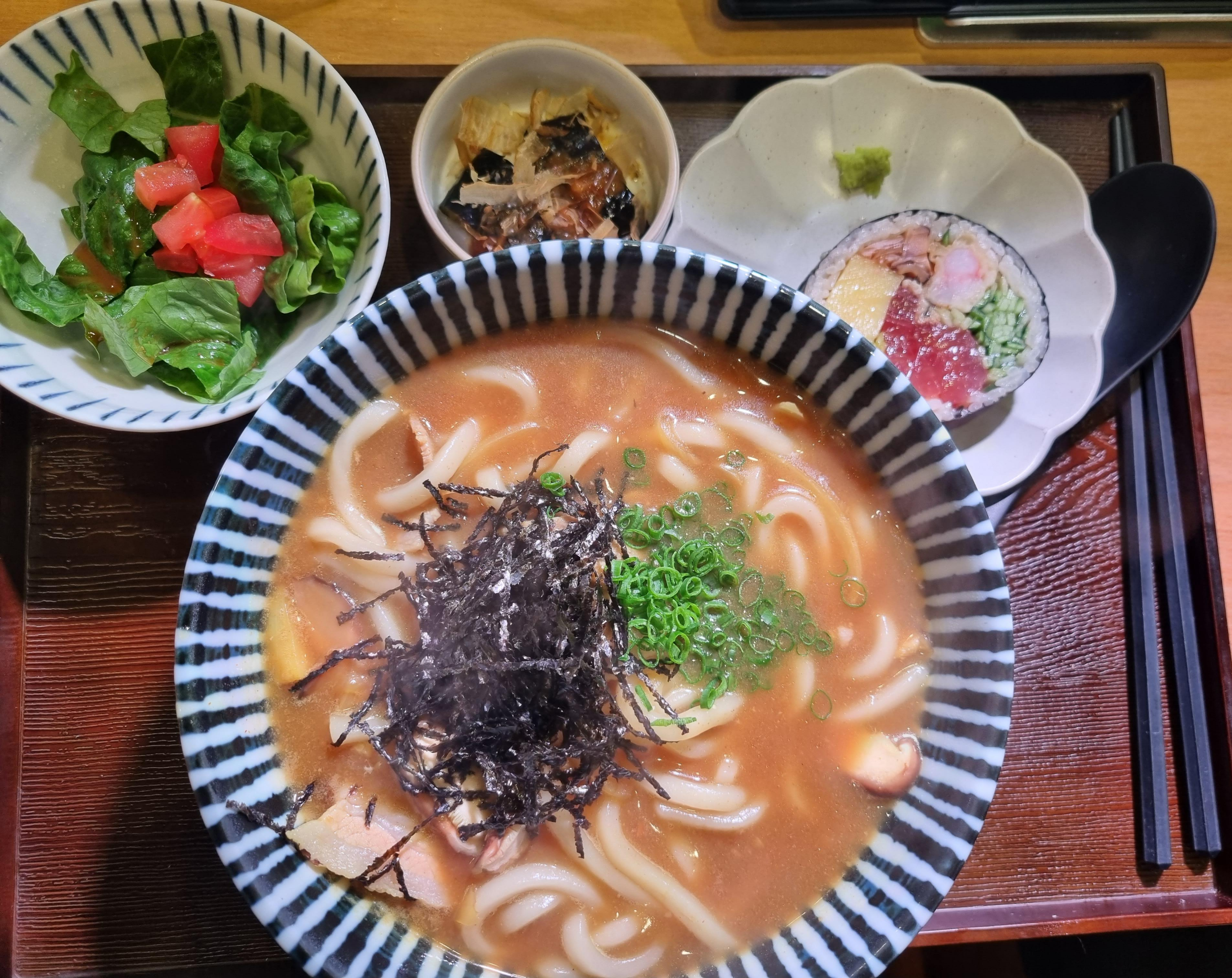 점심 정식에는 나베 + 후토마키가 제공되고, 후토마키 정식에는 일반 우동이 함께 나온다!!