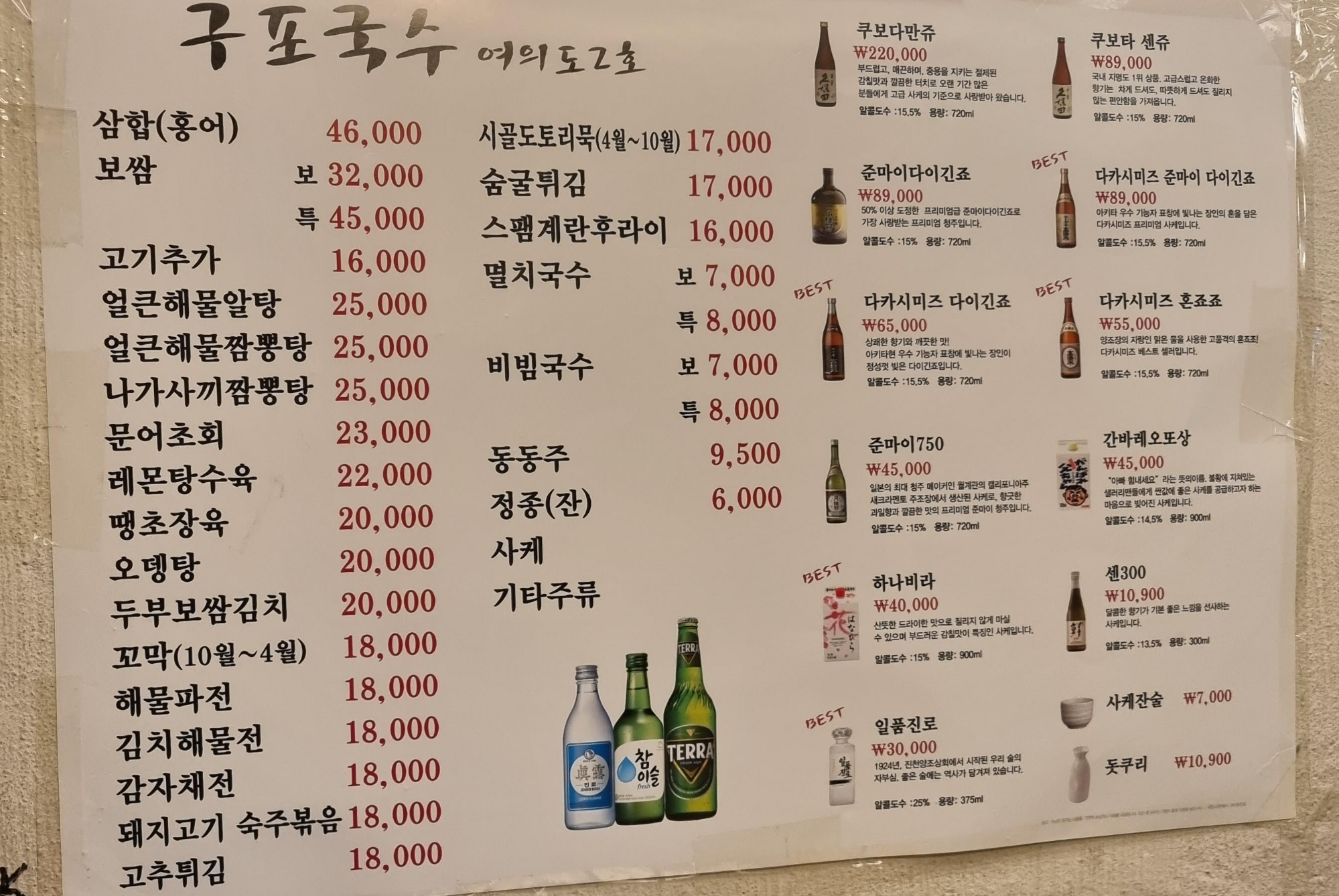 구포국수는 특이하게 메인 술을 여의도 사케로 판다.