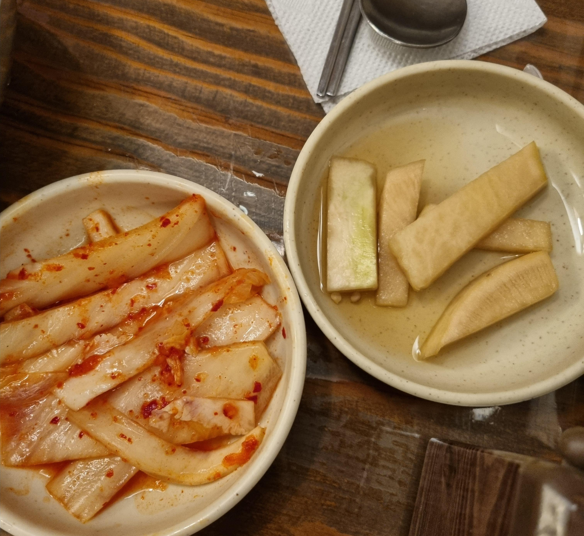 기본 밑반찬으로 나오는 김치와 무절임.