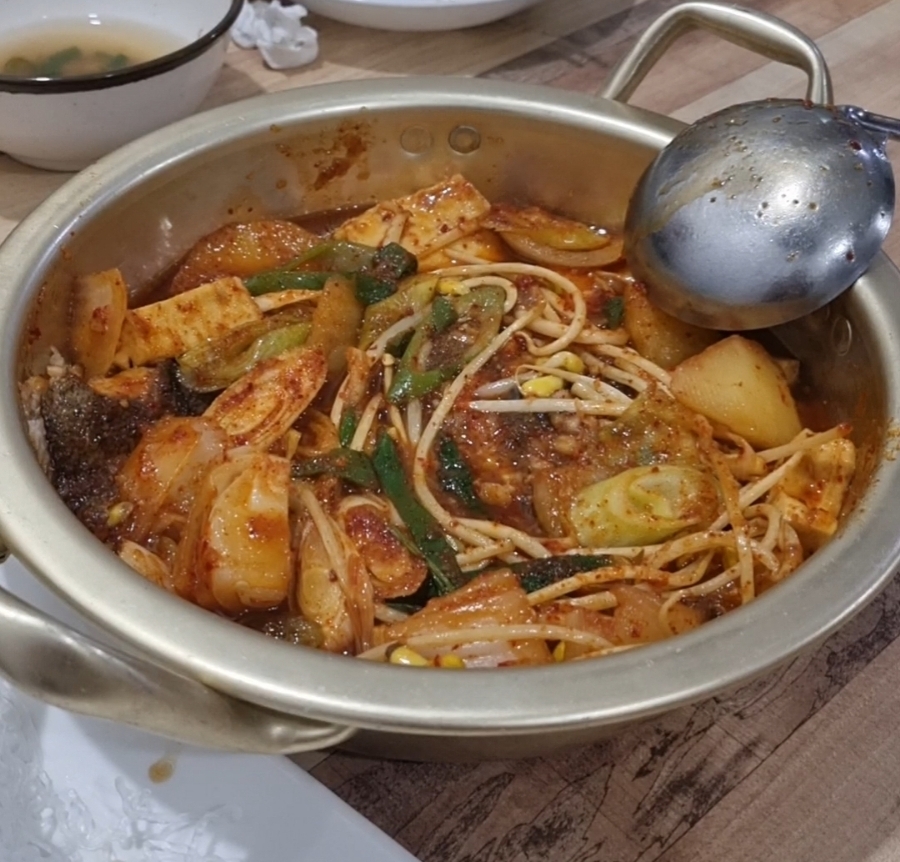 4~5인이 충분히 먹을 양으로 국물이 매콤하니 얼큰해서 소주 안주였다.