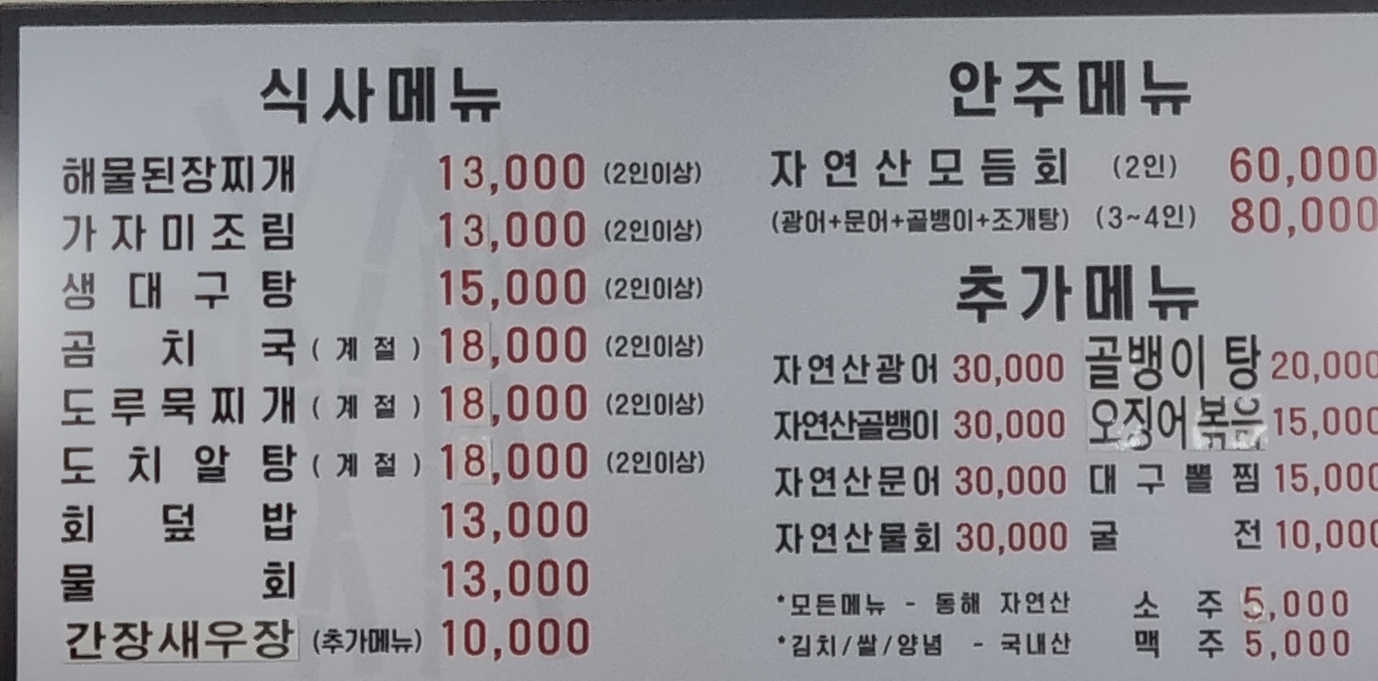 퀄리티 대박인 여의도 자연산모듬회와 식사를 즐길 수 있는 묵호어판장.