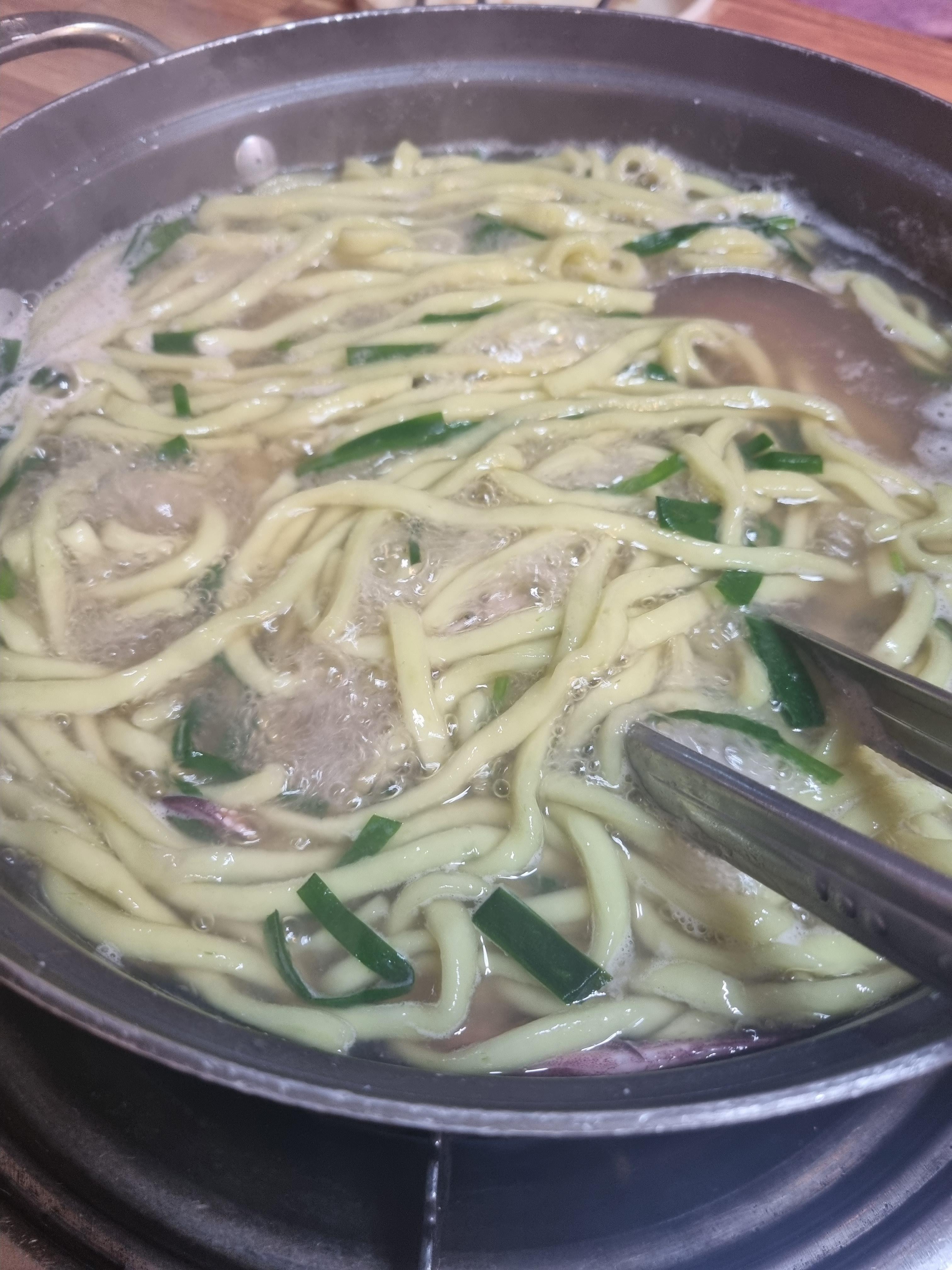 커다란 오징어가 두 마리 들어가 풍족한 해물과 함께 먹을 수 있는 공산성 근처 맛집 칼국수.