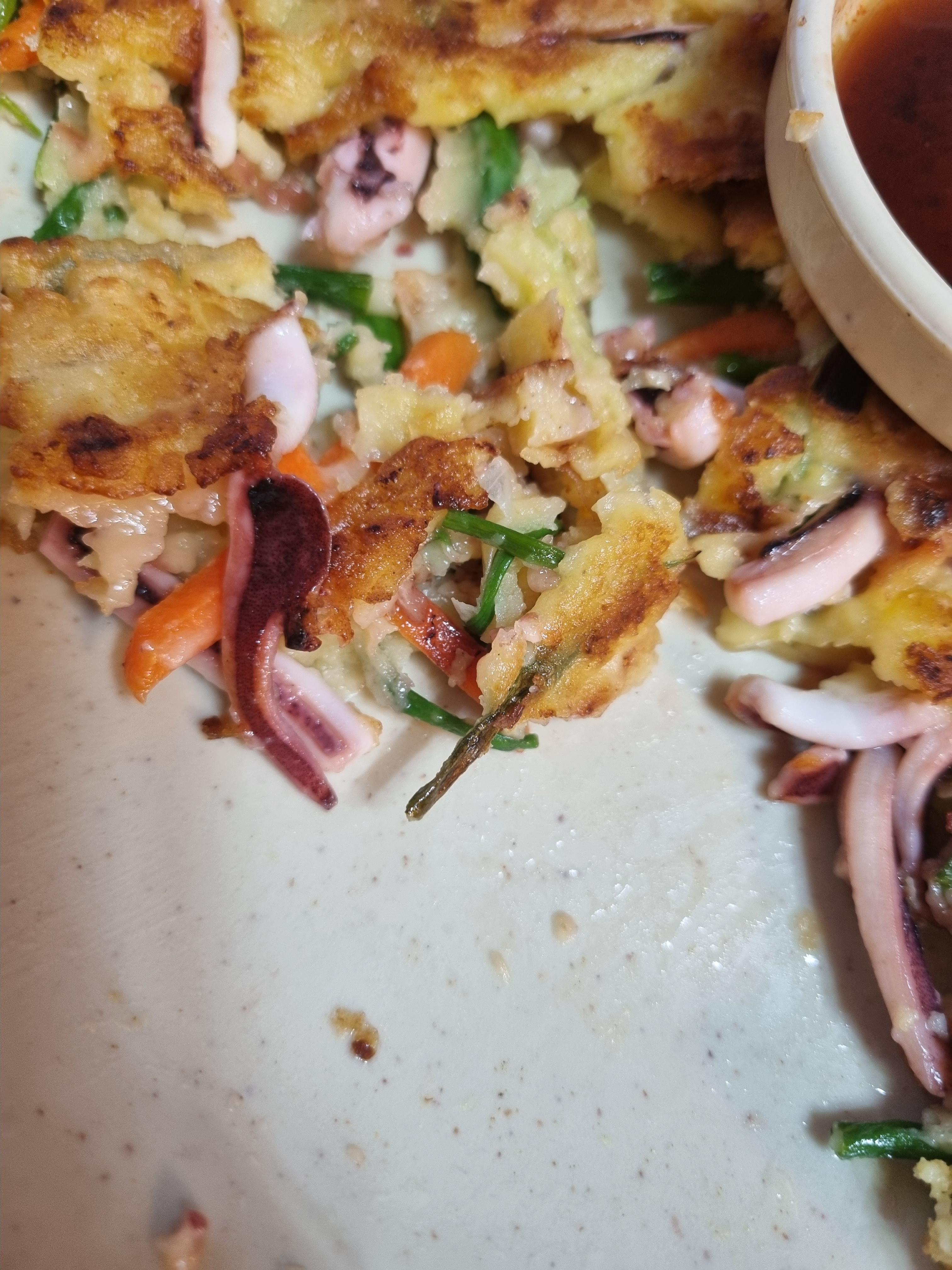 해물파전도 마찬가지로 오징어가 안에 꽉 차 있었다!