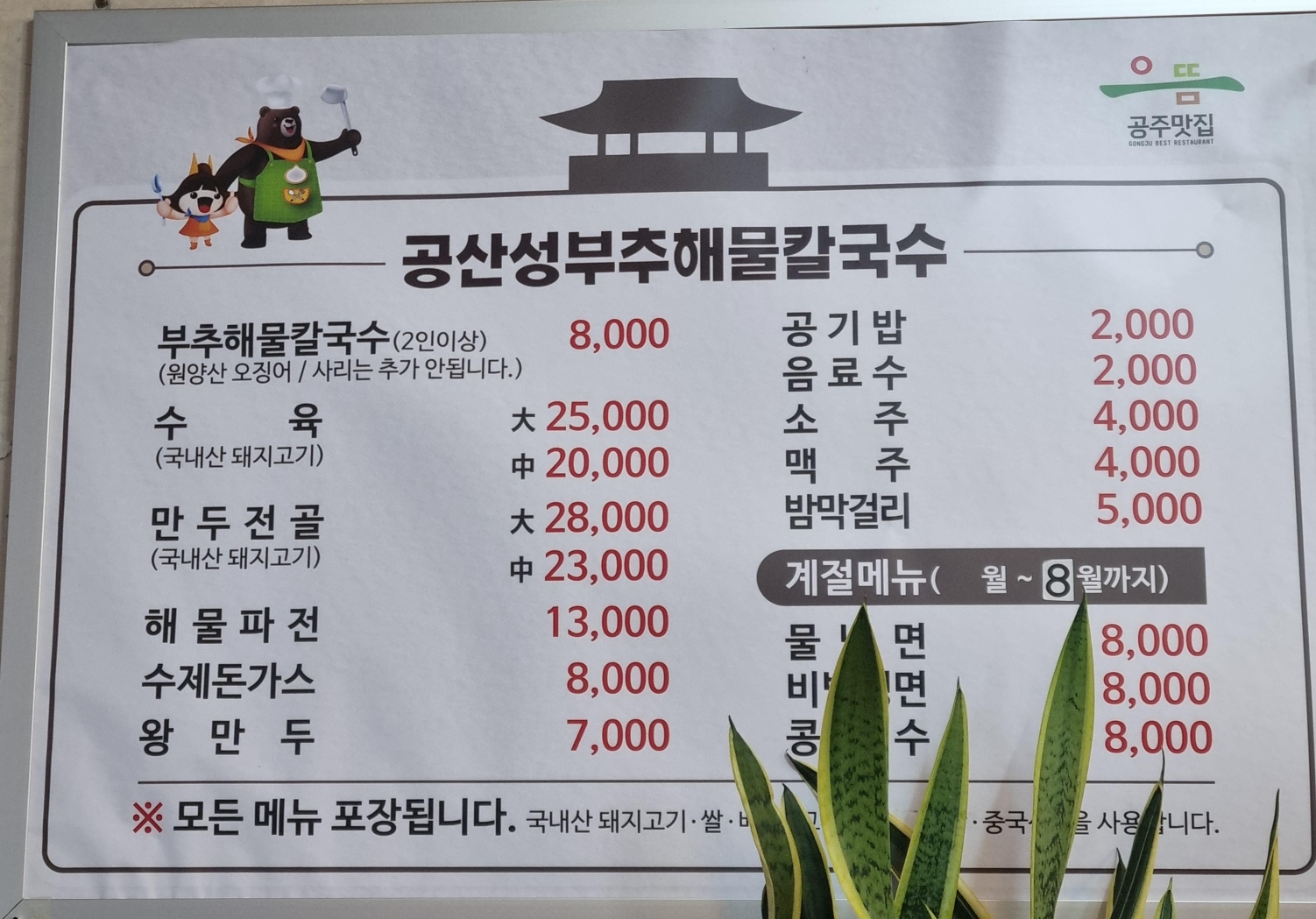 공주 공산성 바로 옆에 있는 공주 맛집 공산성부추해물칼국수