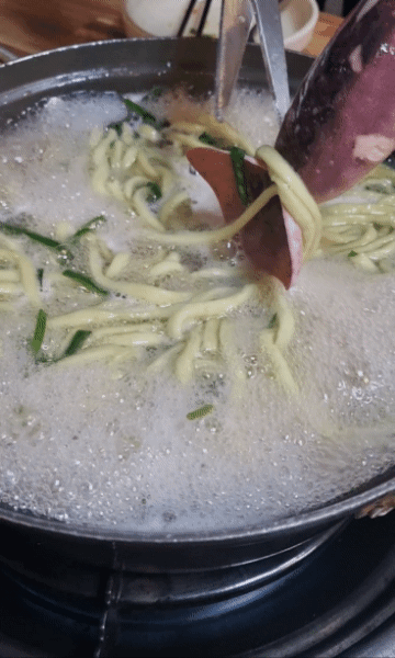 뜨끈하고 깊은 맛의 국물과 쫄깃한 부추칼국수면을 다 먹고 나니