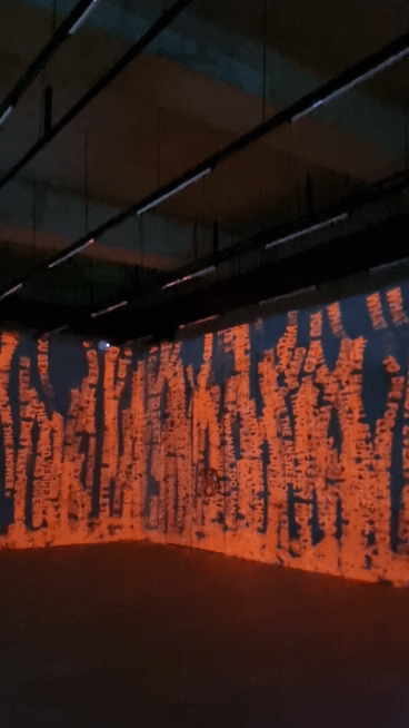 저 붉은 글자들은 the death, guns 등과 같이 부정적인 단어들인데, 하나둘씩 떨어지다 우르르 쏟아질 때 너무 무서웠다. 소리와도 함께 들으면 더 몰입된다.