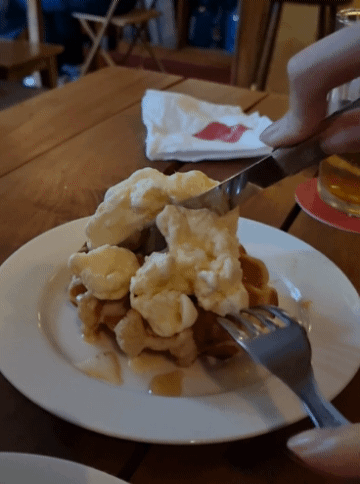 바스크 치즈케이크와 바닐라 아이스크림과 애플와플(애플크럼블이 품절이었음)