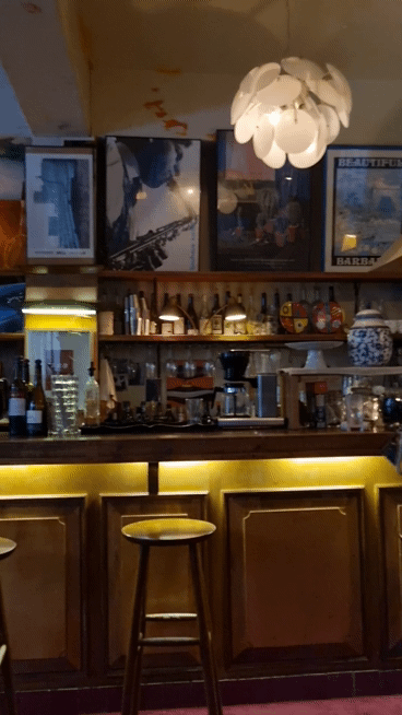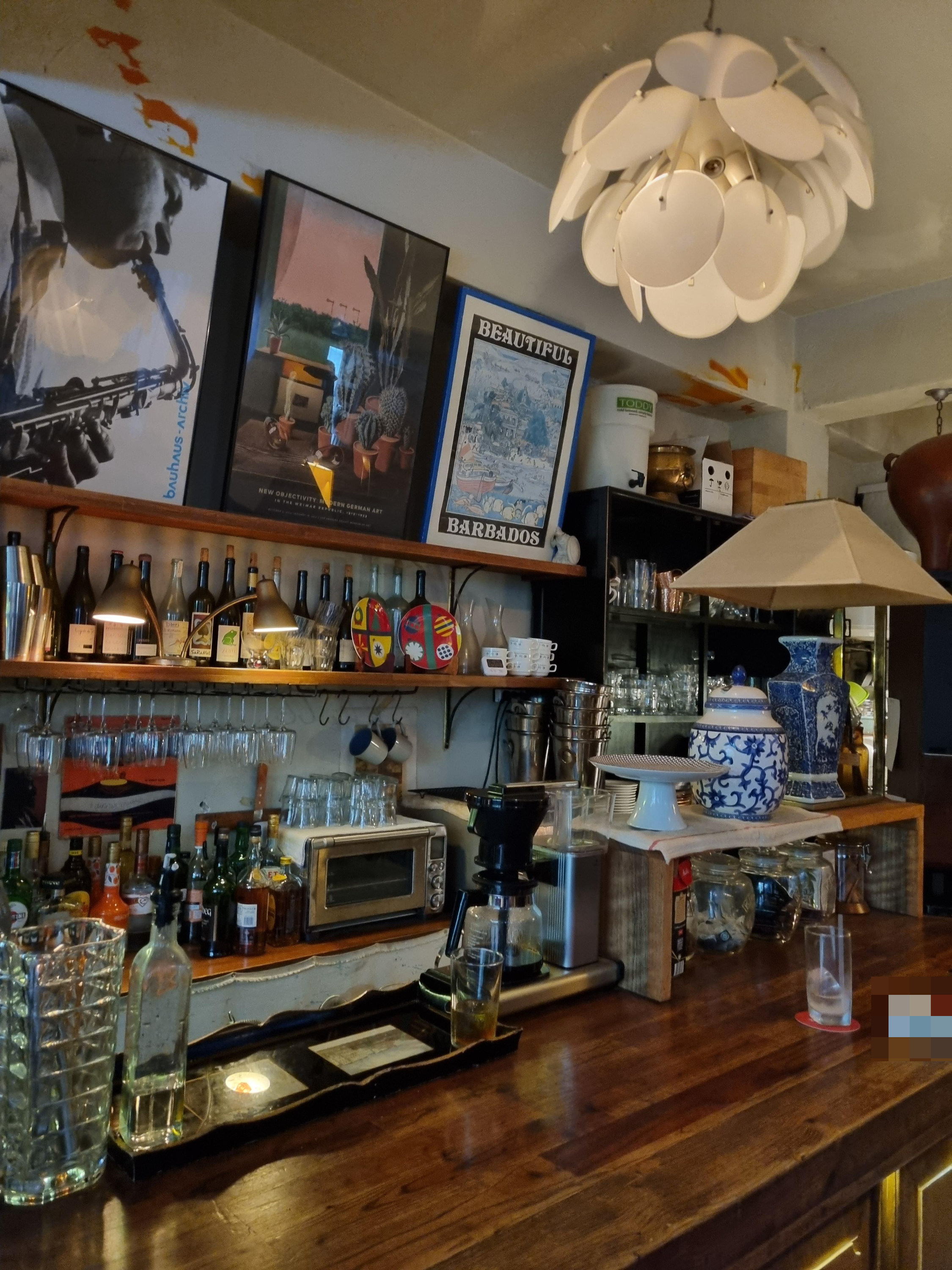 어두운 조명에 곳곳에 빈티지 가구와 소품들이 가득