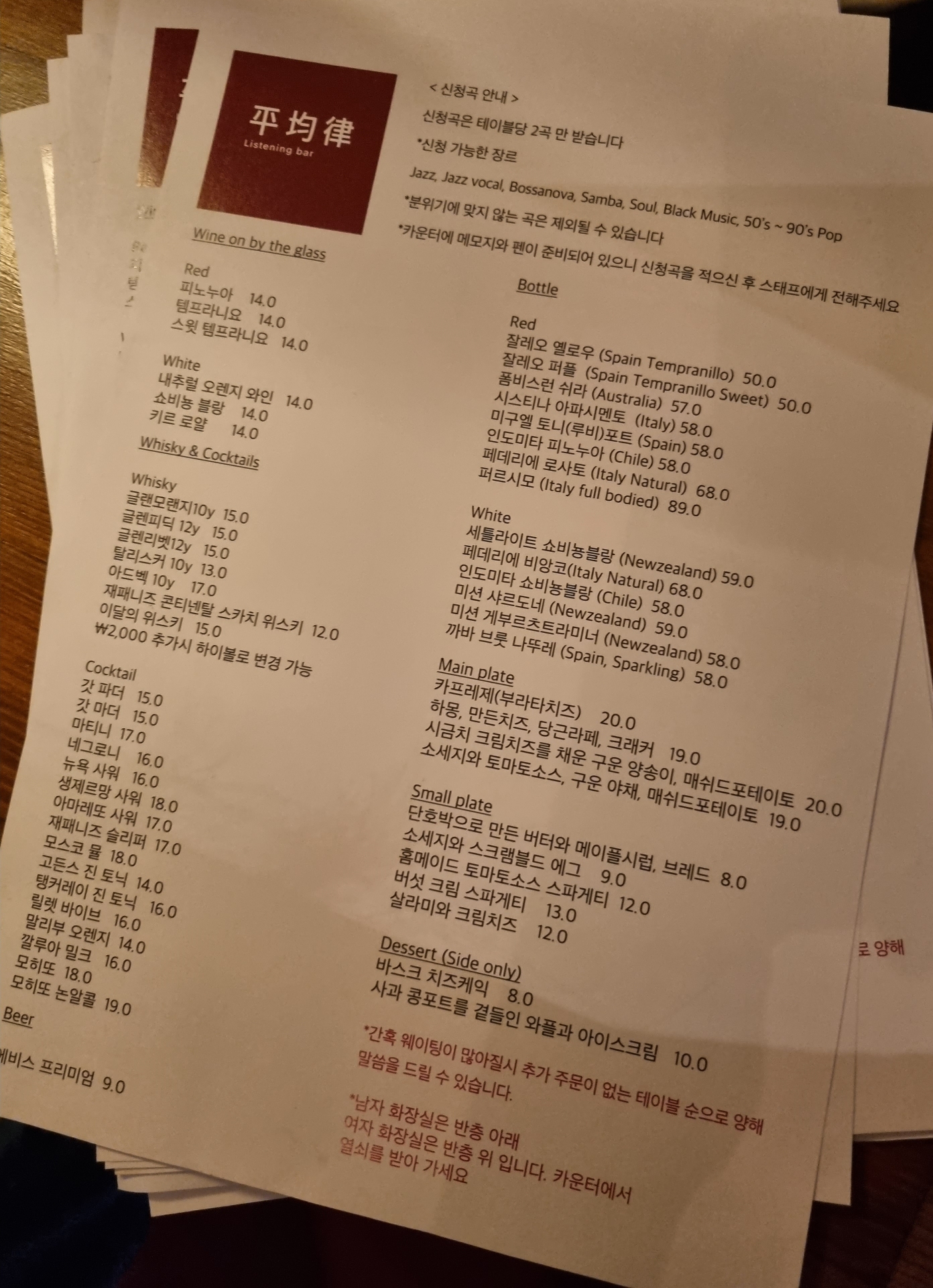 사실 을지로 LP바 평균율은 가격만 놓고 보면 비싸지는 않은데, 양이 좀 적다.