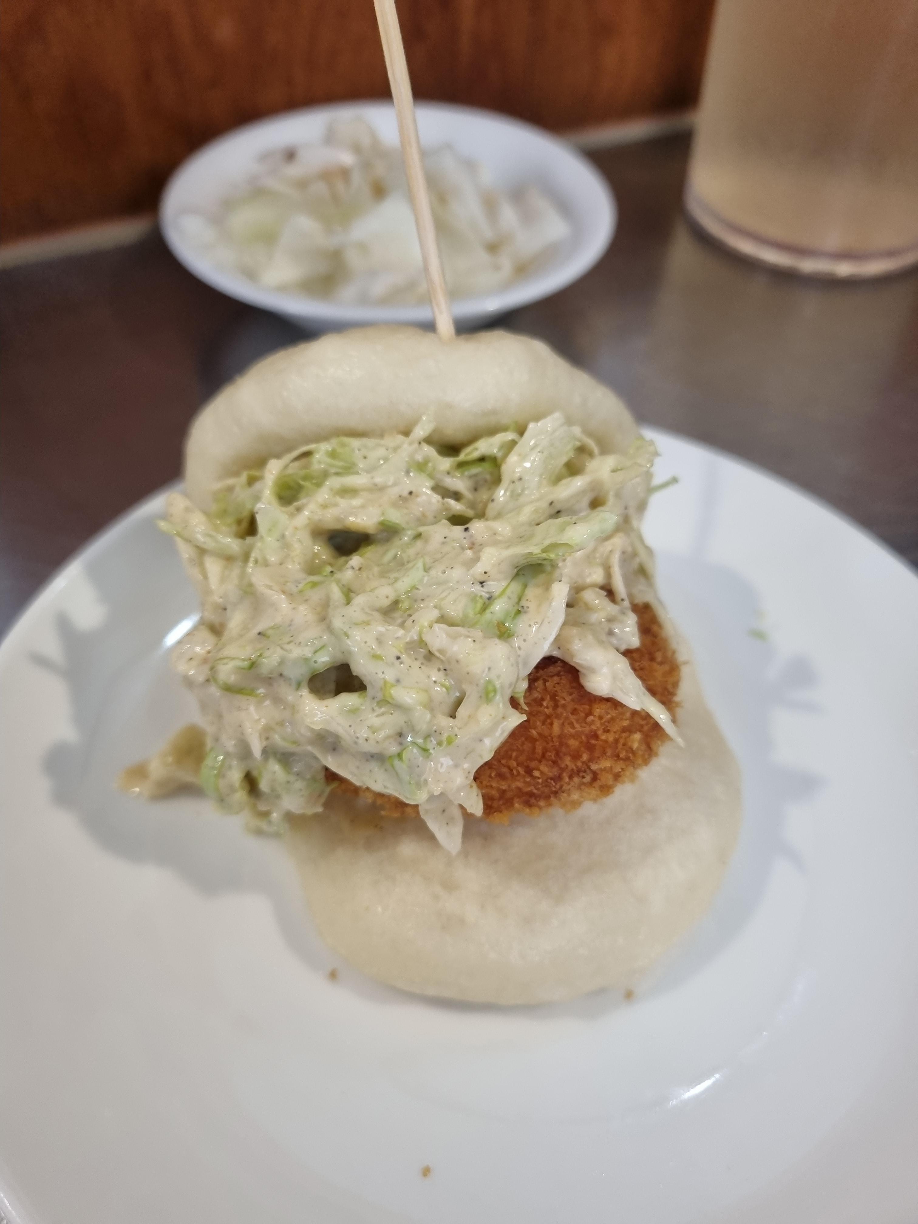새우 바오는 두텁고 꽉 찬 새우튀김과 머스터드? 마요네즈? 같은 소스에 버무려진 양상추가 들어가 있어 느끼하지 않고 식감이 아삭하다.