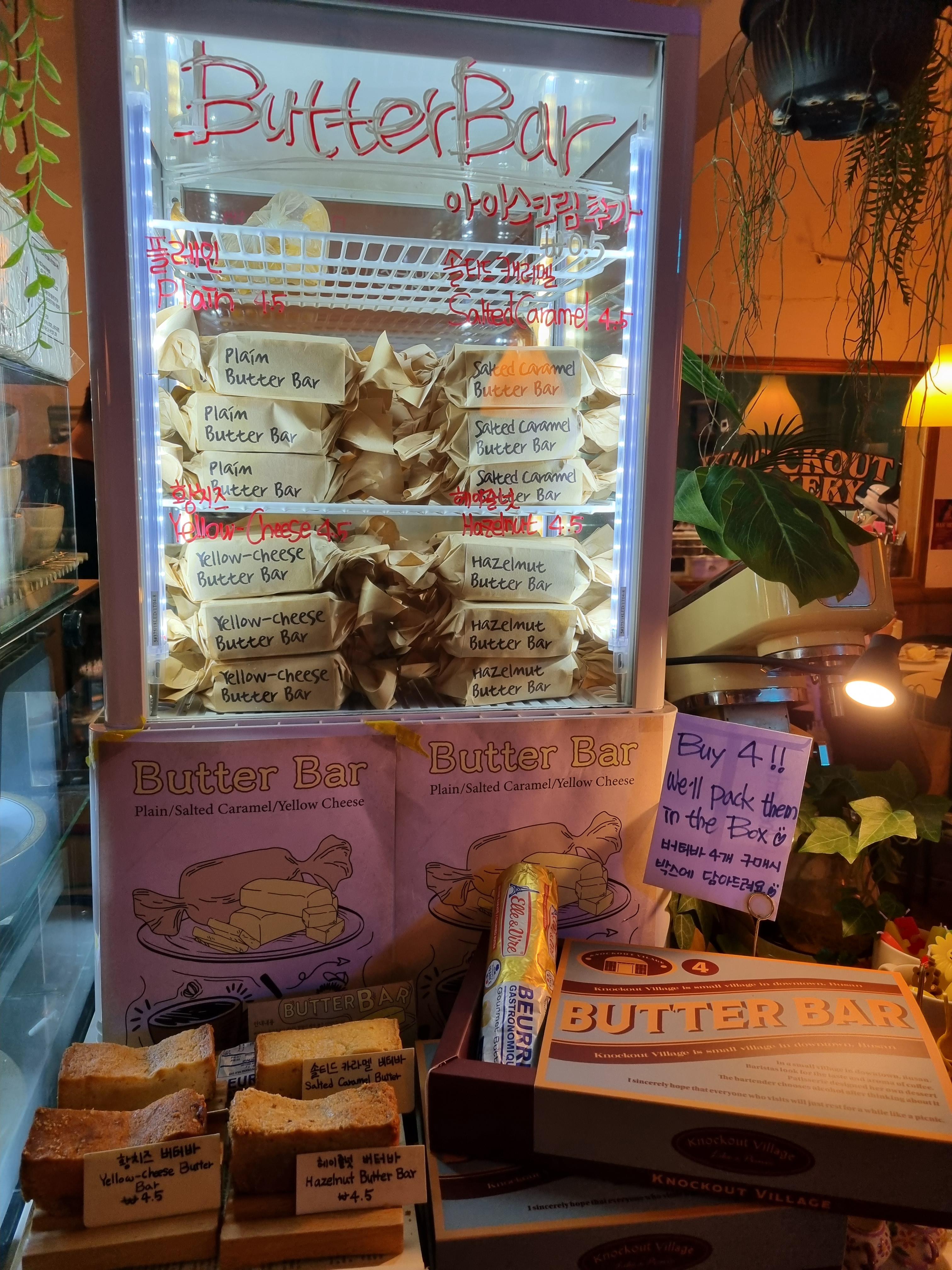 디스플레이가 너무 힙하고, 버터바 포장도 너무 예쁘다.