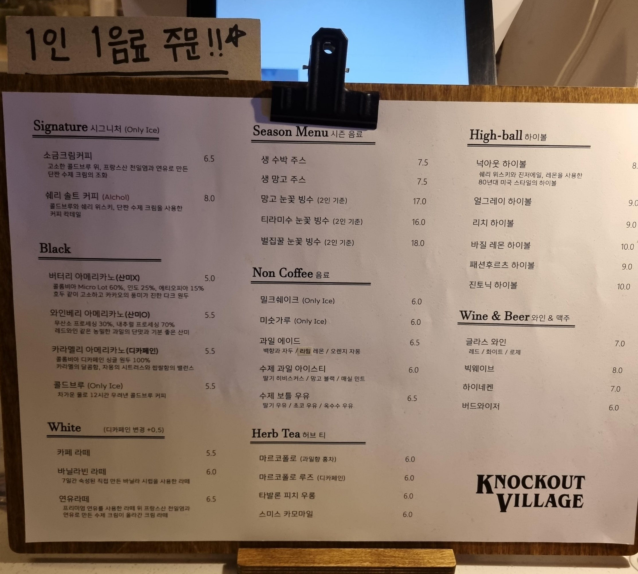 낮에는 카페, 저녁에는 술집인 만큼, 커피랑 술까지 판다