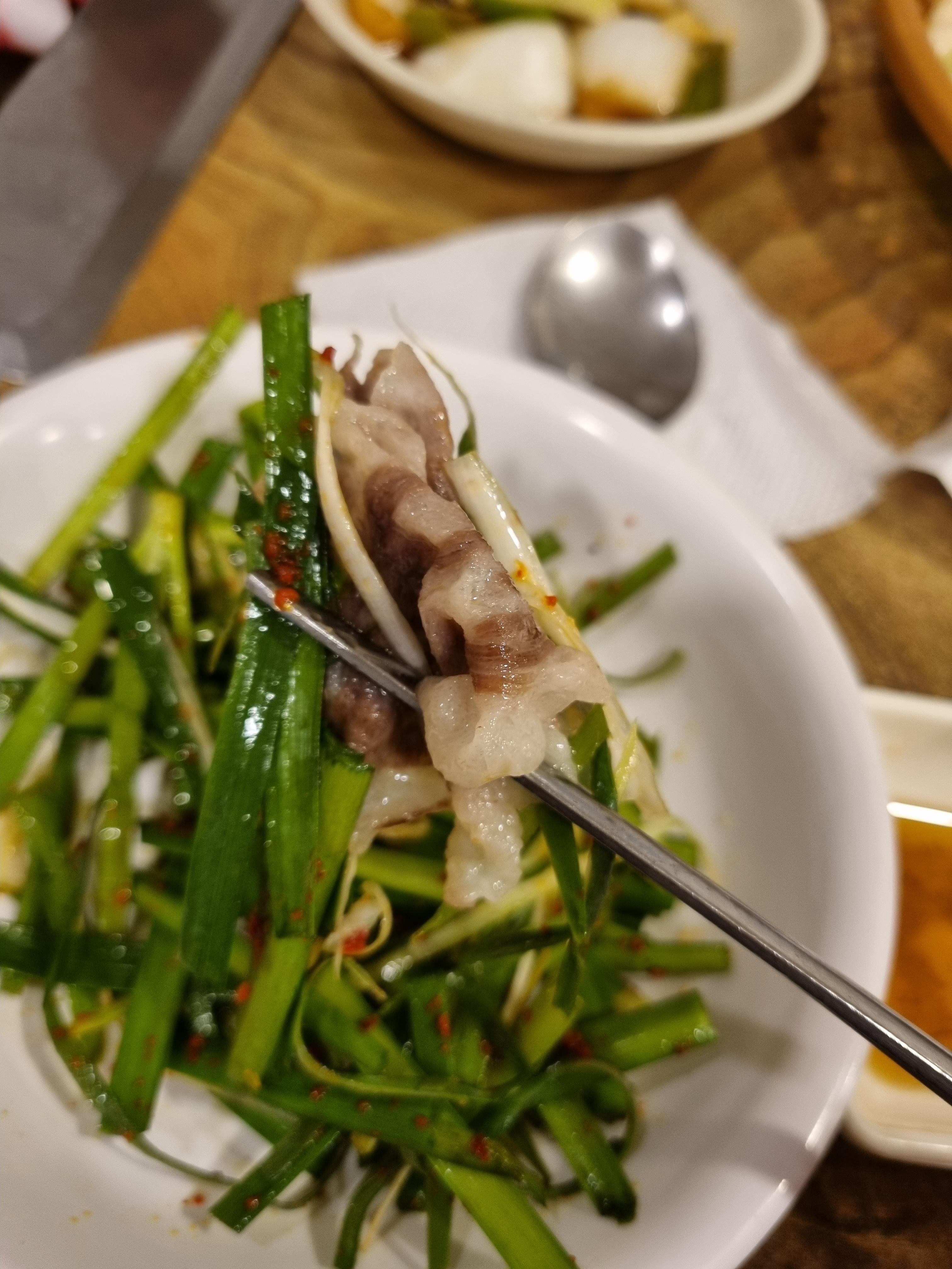 곱창은 못 찍었는데, 매운 양념이랑 같이 찍어 먹으면 쫄깃한 식감이 대박 맛있었다.